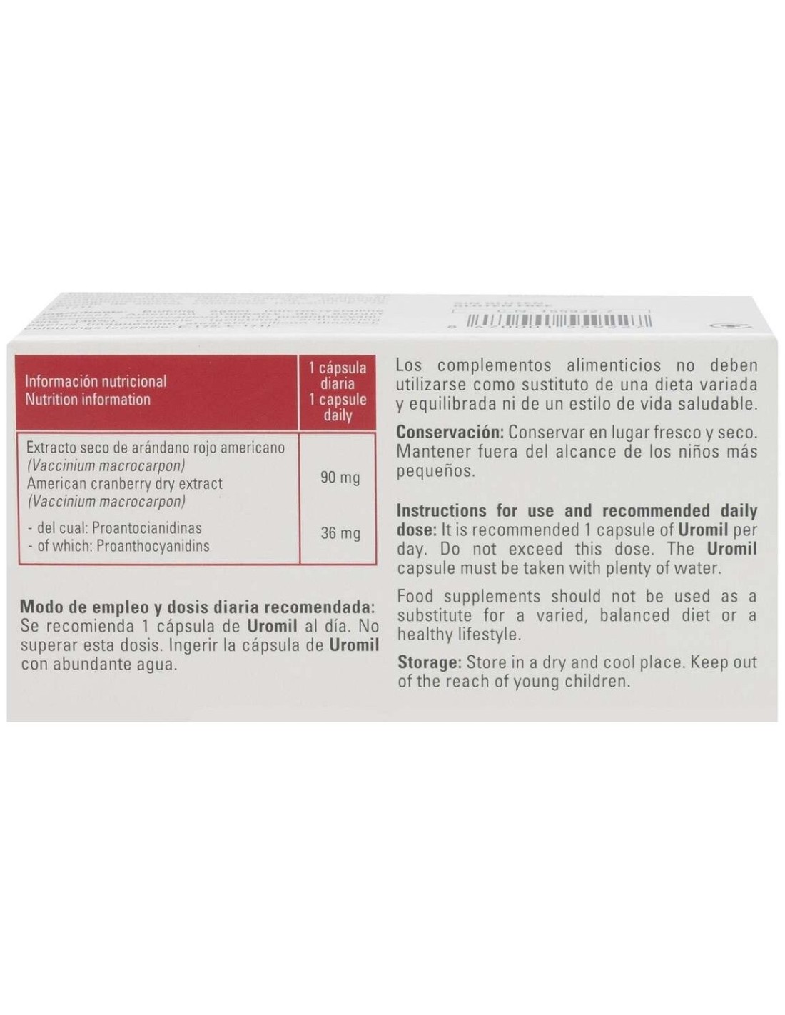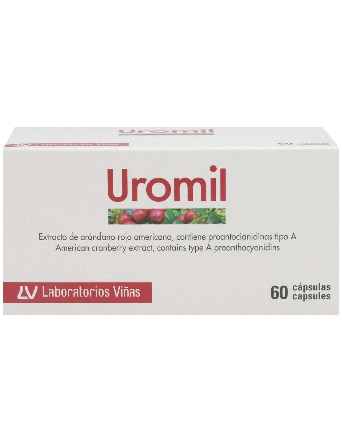 Uromil cápsulas es un complemento alimenticio que contiene extracto de arándano rojo americano, muy apreciado por sus propiedades antibacterianas y beneficiosas para el sistema urinario.