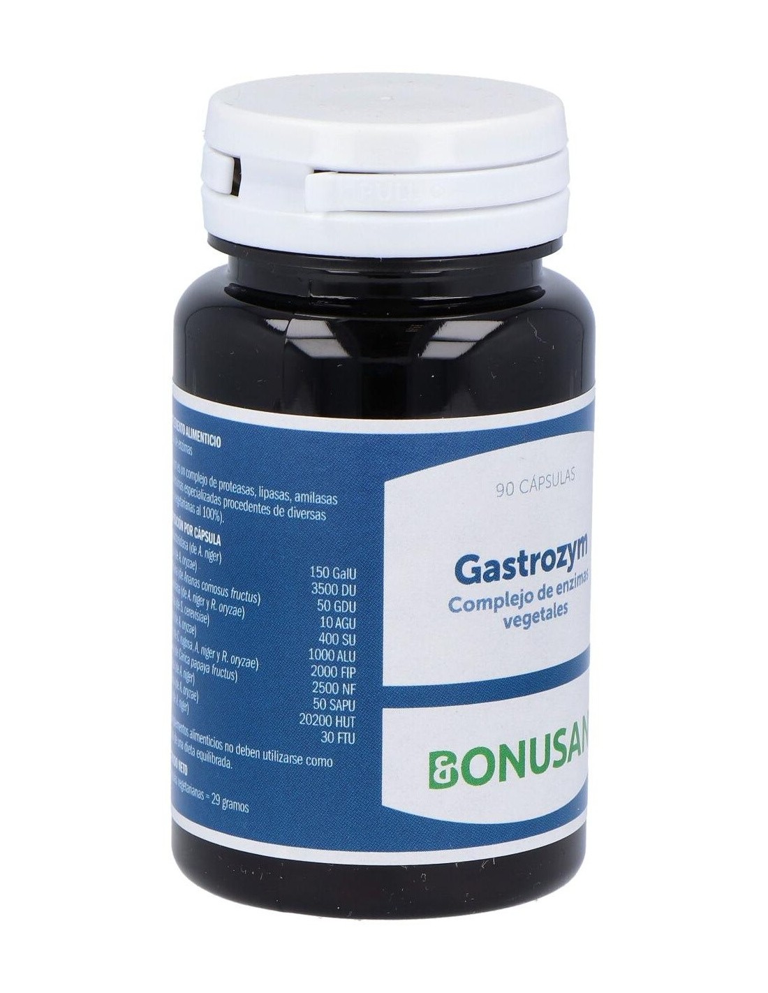 Gastrozym de Bonusan es un complejo amplio de enzimas que sólo contiene enzimas vegetarianas que son activas durante más tiempo, incluyendo la lipasa,