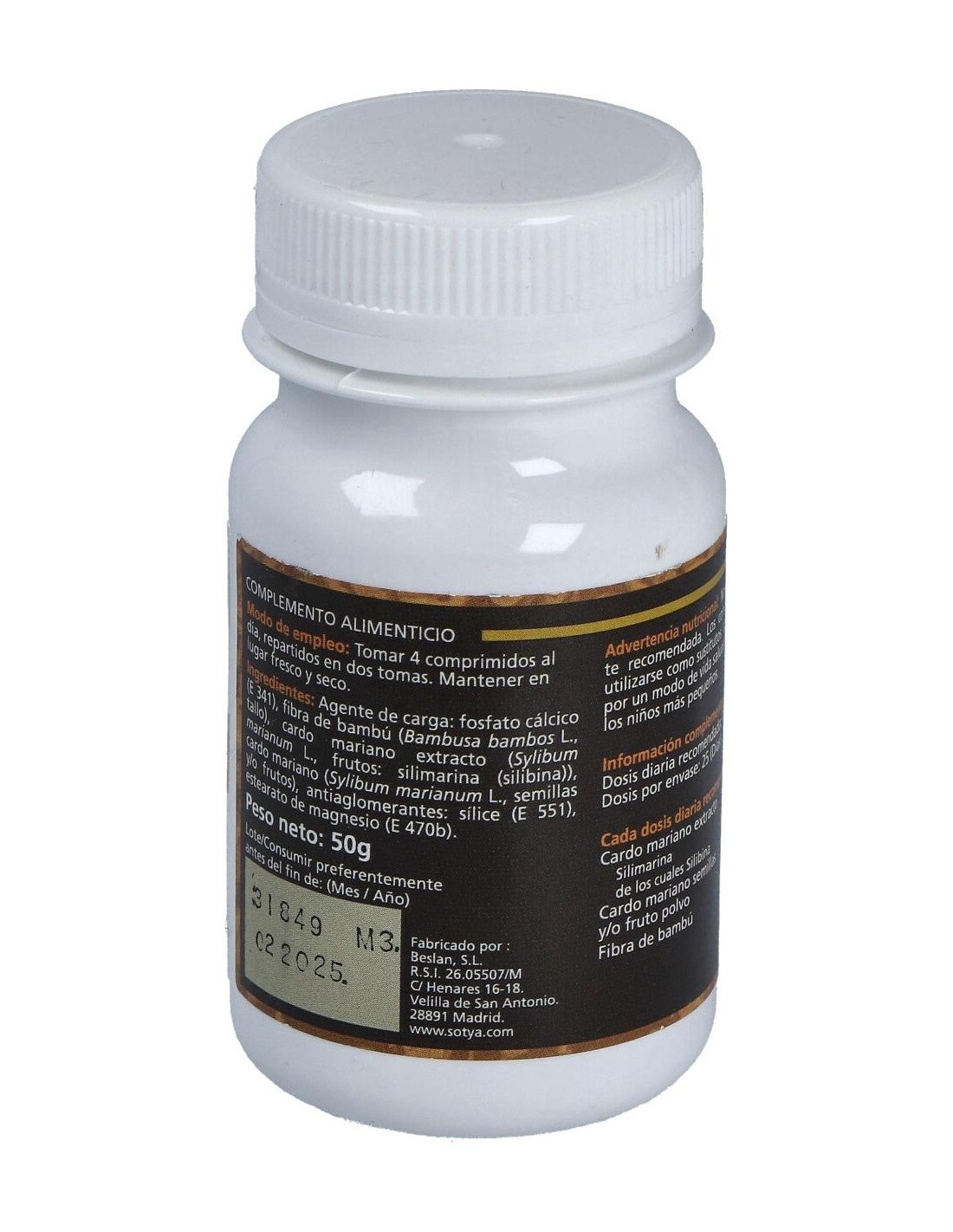 - Cada comprimido contiene 500 mg de extracto de cardo mariano, reconocido por su composición natural.