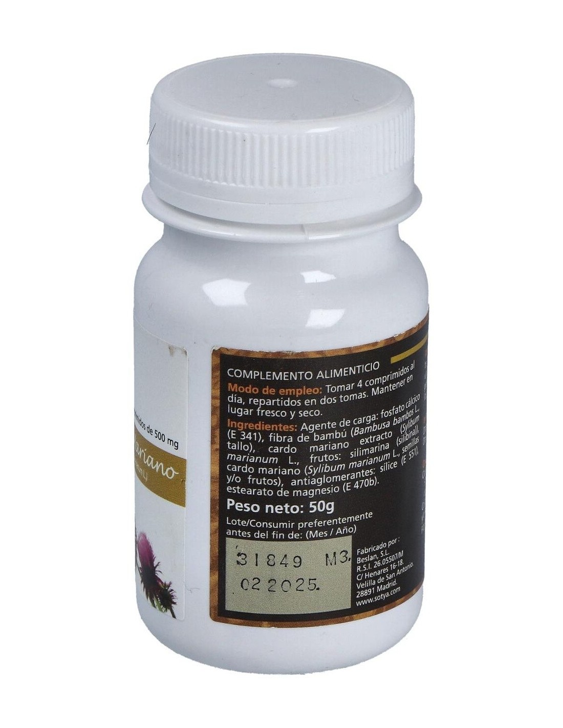 Cardo Mariano 500Mg Comp. 100U de Sotya proporciona una opción accesible para quienes buscan complementar su alimentación con ingredientes derivados de plantas.