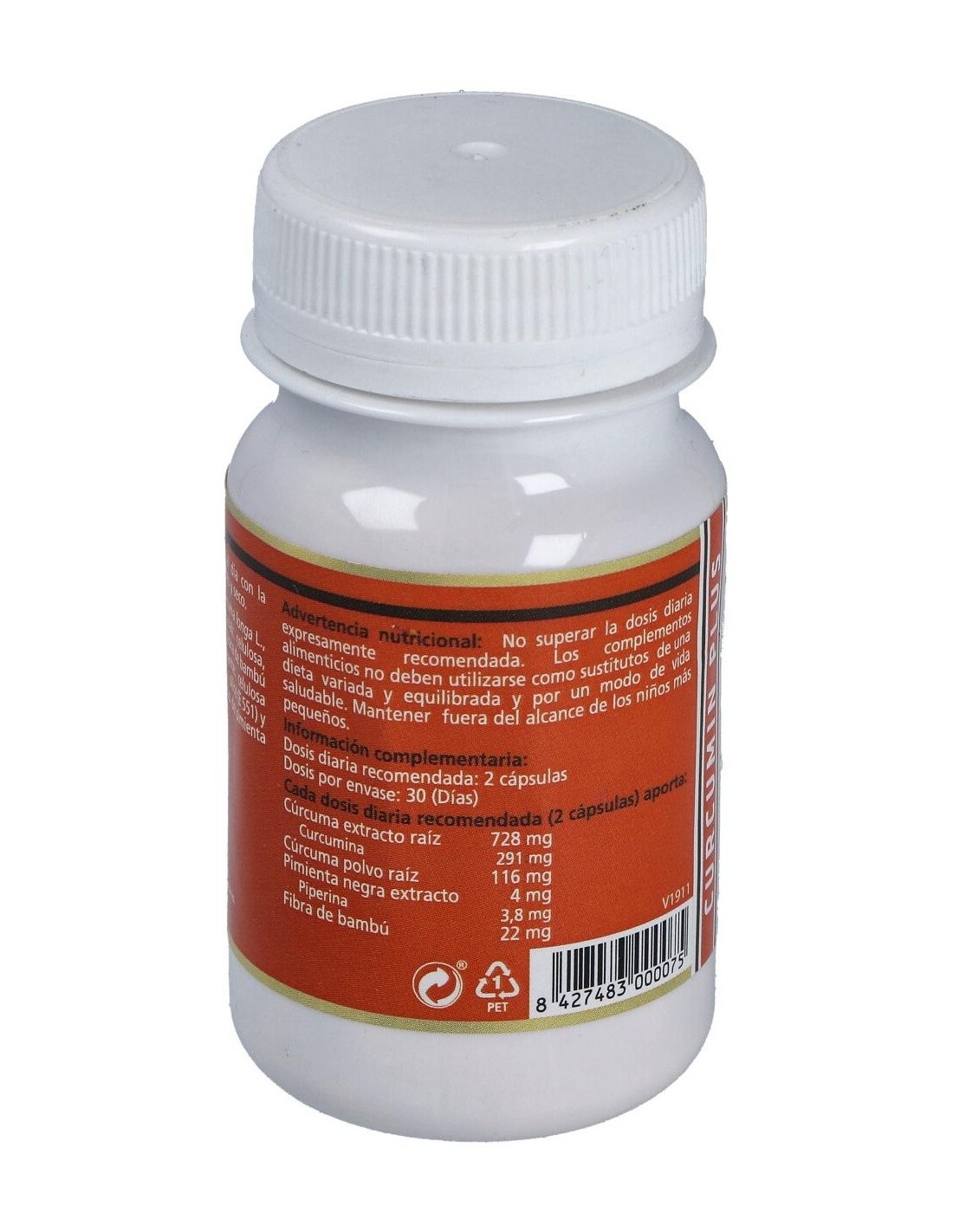 El suplemento está elaborado con extracto de curcumina estandarizado, garantizando la concentración indicada en cada cápsula. Su diseño en formato cápsula facilita su consumo diario, adaptándose a diferentes estilos de vida y necesidades nutricionales.