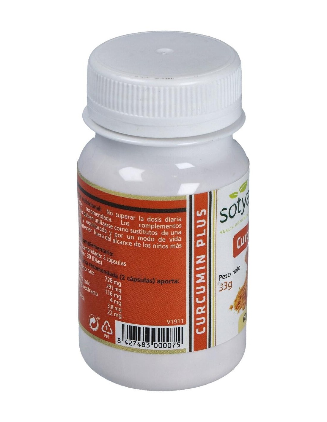 Curcumin Plus 550Mg Cáps. 60U de Sotya ofrece una forma práctica de incluir curcumina en la alimentación cotidiana, apoyando una dieta equilibrada.
