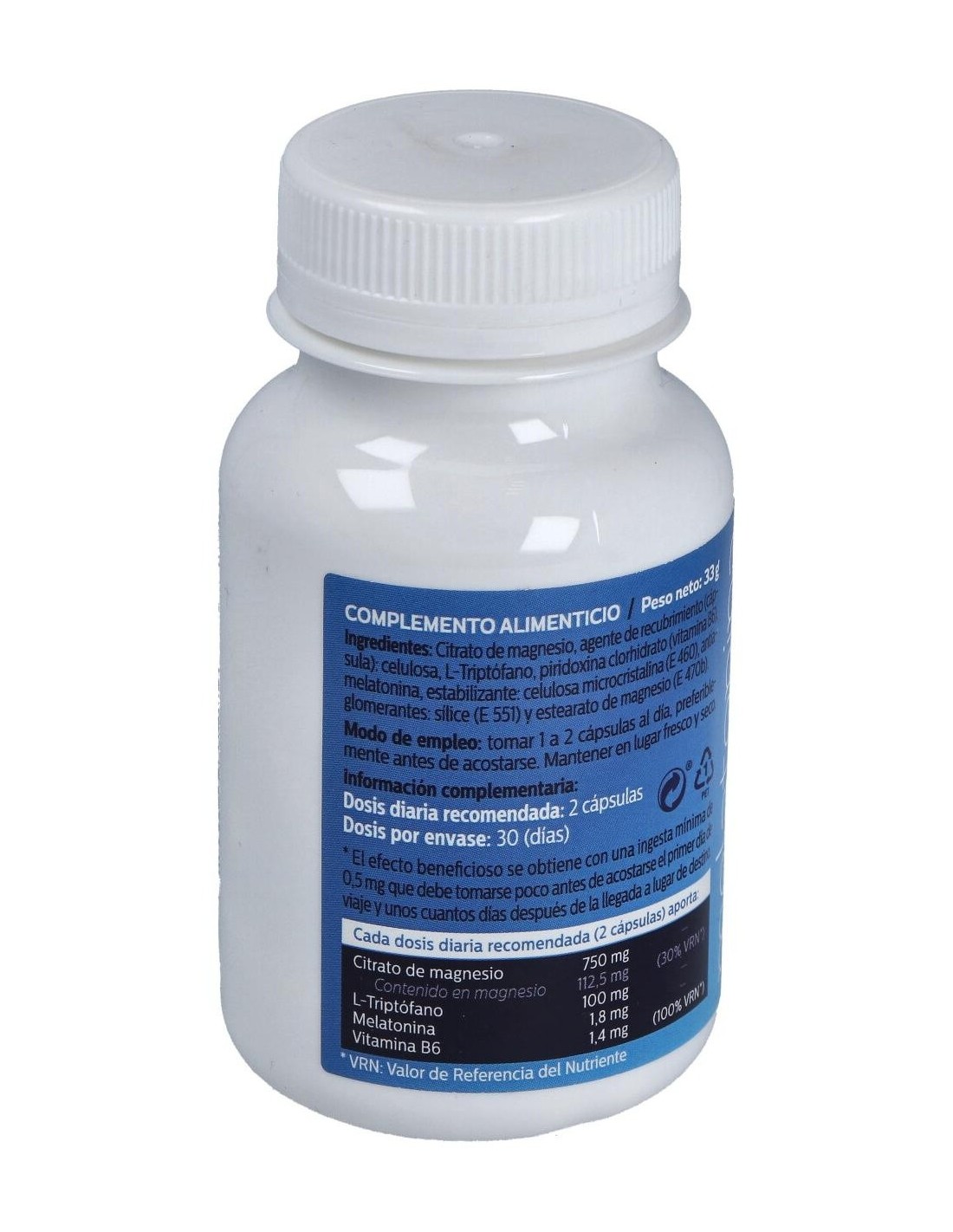 - Contiene melatonina en una dosis de 550 mg, que ayuda a regular los ritmos circadianos y favorecer un patrón de sueño constante.