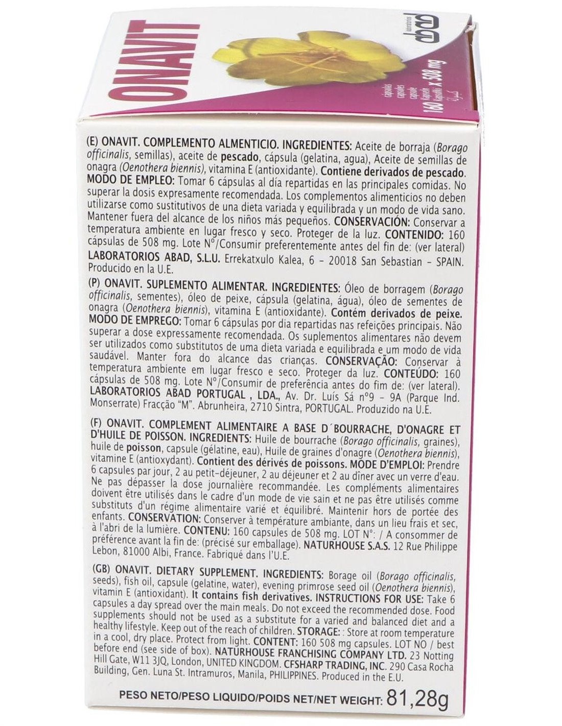 Onavit (Onaplus) 160Cap. de Kiluva - Abad es un suplemento diseñado para personas que buscan apoyar su bienestar diario mediante una fórmula cuidadosamente elaborada. Es adecuado para quienes desean complementar su alimentación con ingredientes seleccionados para favorecer un estilo de vida equilibrado.