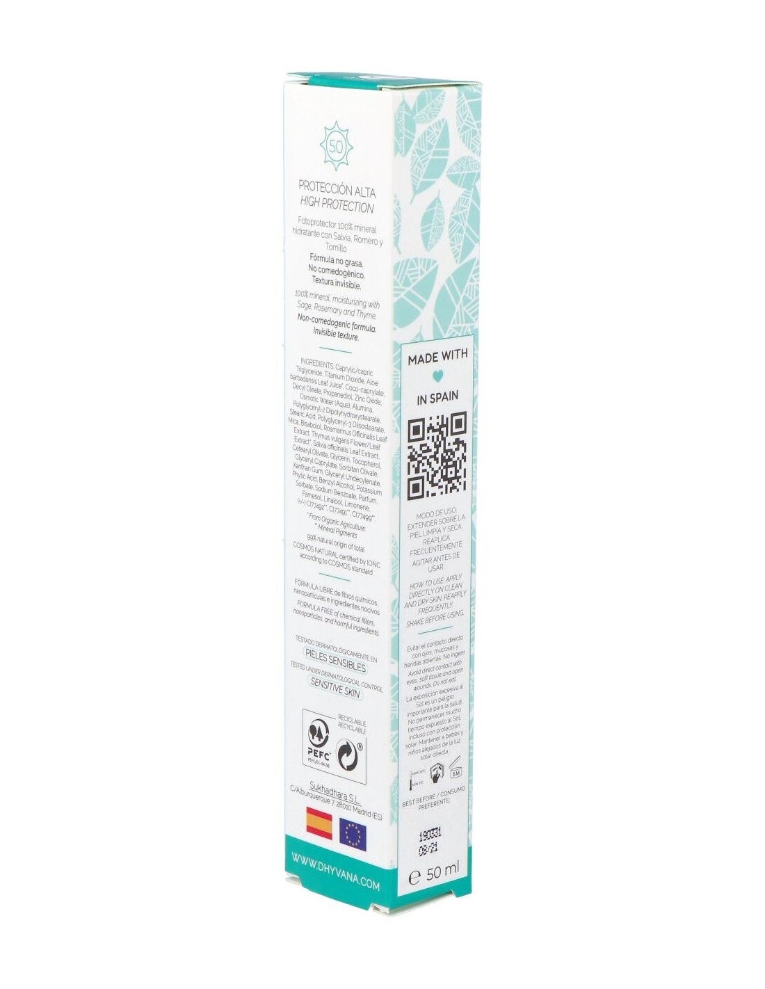 Gracias a su composición, a base de extractos naturales de salvia, romero y tomillo, Eco Suncare® Protector Solar Spf50 de Dhyvana absorbe los rayos UV potenciando la fotoprotección mineral. Ofrece una alta tolerancia cutánea y es apta para todo tipo de pieles, incluso las más sensibles.