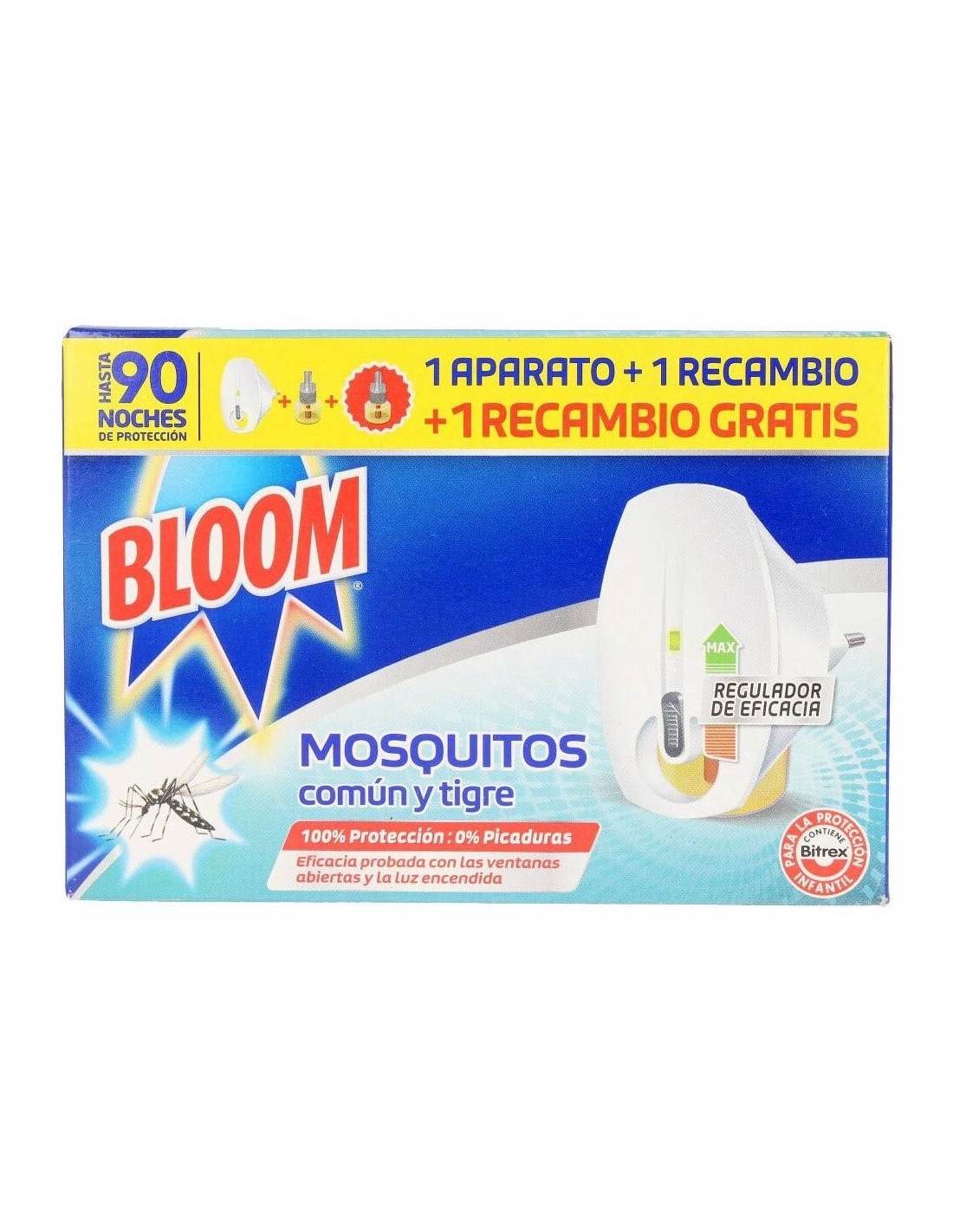 BLOOM DERMOfrece una protección continua durante 135 noches contra los mosquitos común y tigre (45 noches por recambio). Los aparatos funcionan incluso con las luces encendidas y los recambios son compatibles con cualquiera de los aparatos eléctricos líquidos de Bloom.
