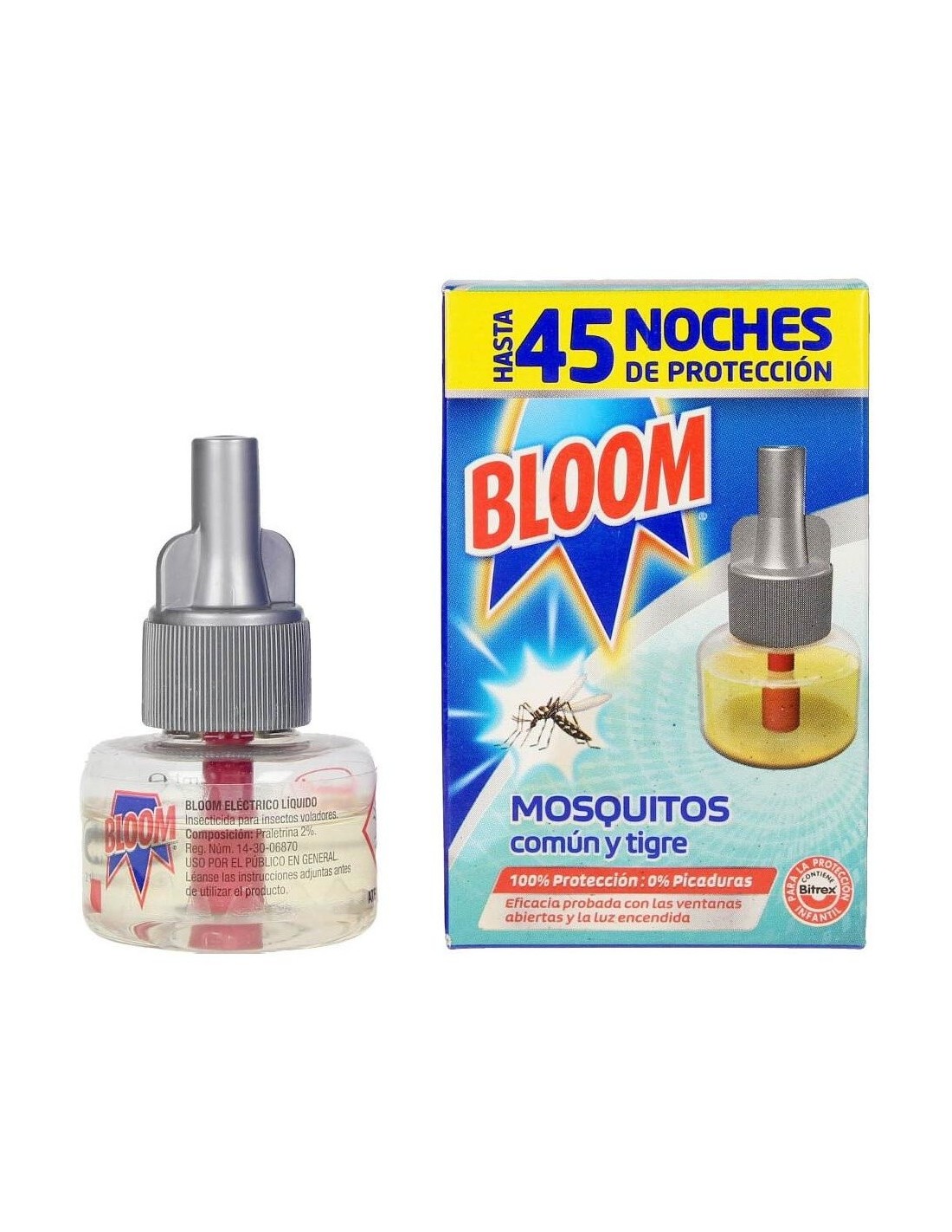 Bloom Recambio Eléctrico Líquido ofrece hasta 45 noches de protección contra los mosquitos común y tigre. El recambio es compatible con cualquiera de los aparatos eléctricos líquidos de Bloom.