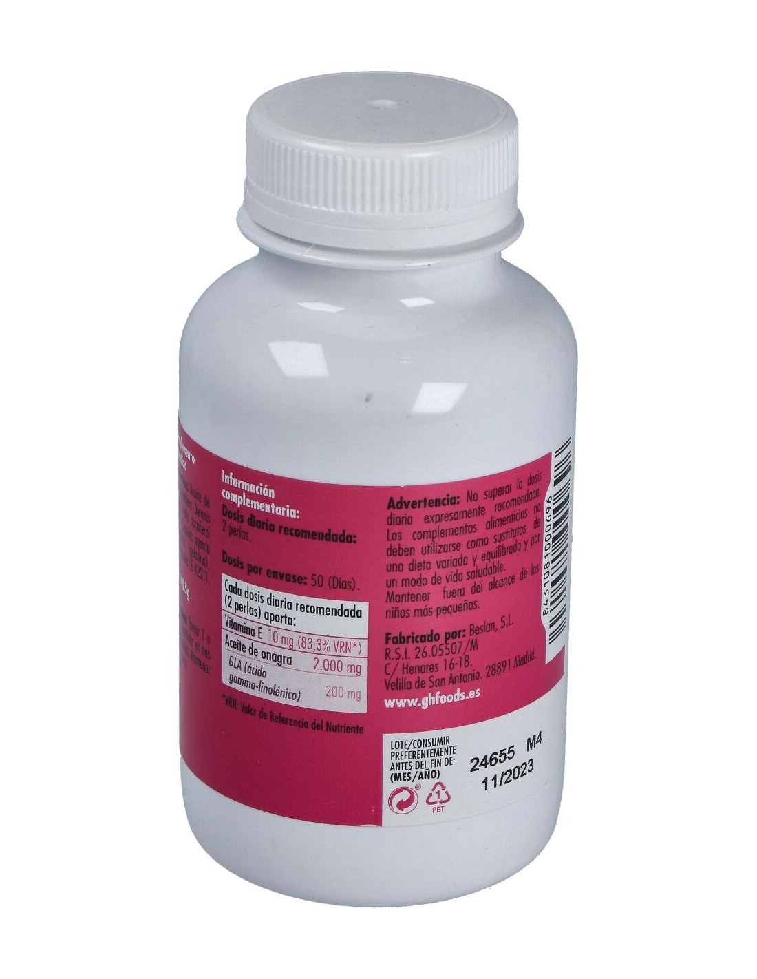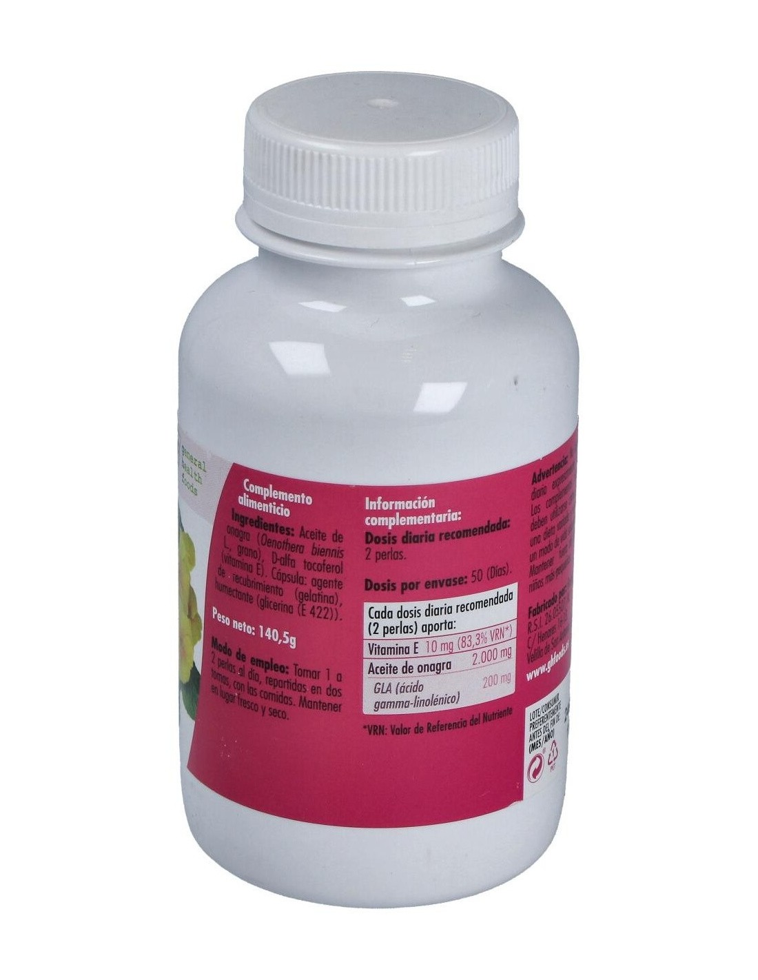 - Cada perla contiene 1400 mg de aceite de onagra, facilitando una dosificación precisa y constante.