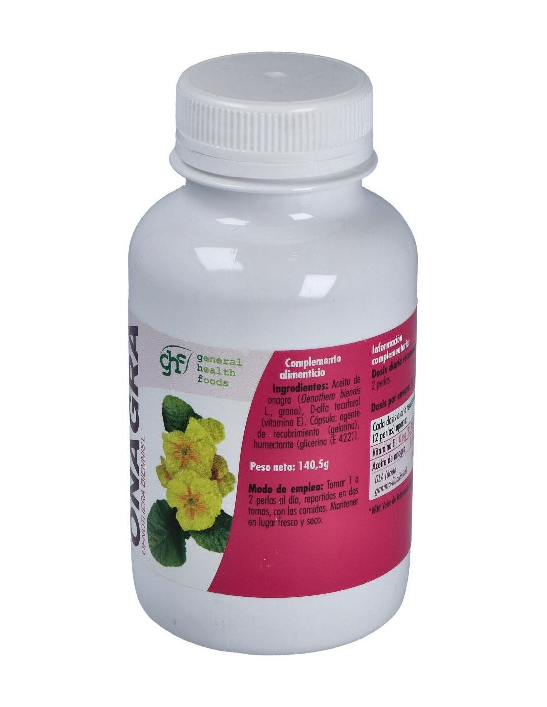 Onagra 1400Mg. 100Perlas de Ghf es un suplemento diseñado para personas interesadas en complementar su dieta con ácidos grasos esenciales provenientes de la onagra. Este producto es adecuado para quienes buscan una opción práctica para incorporar este ingrediente en su rutina diaria.