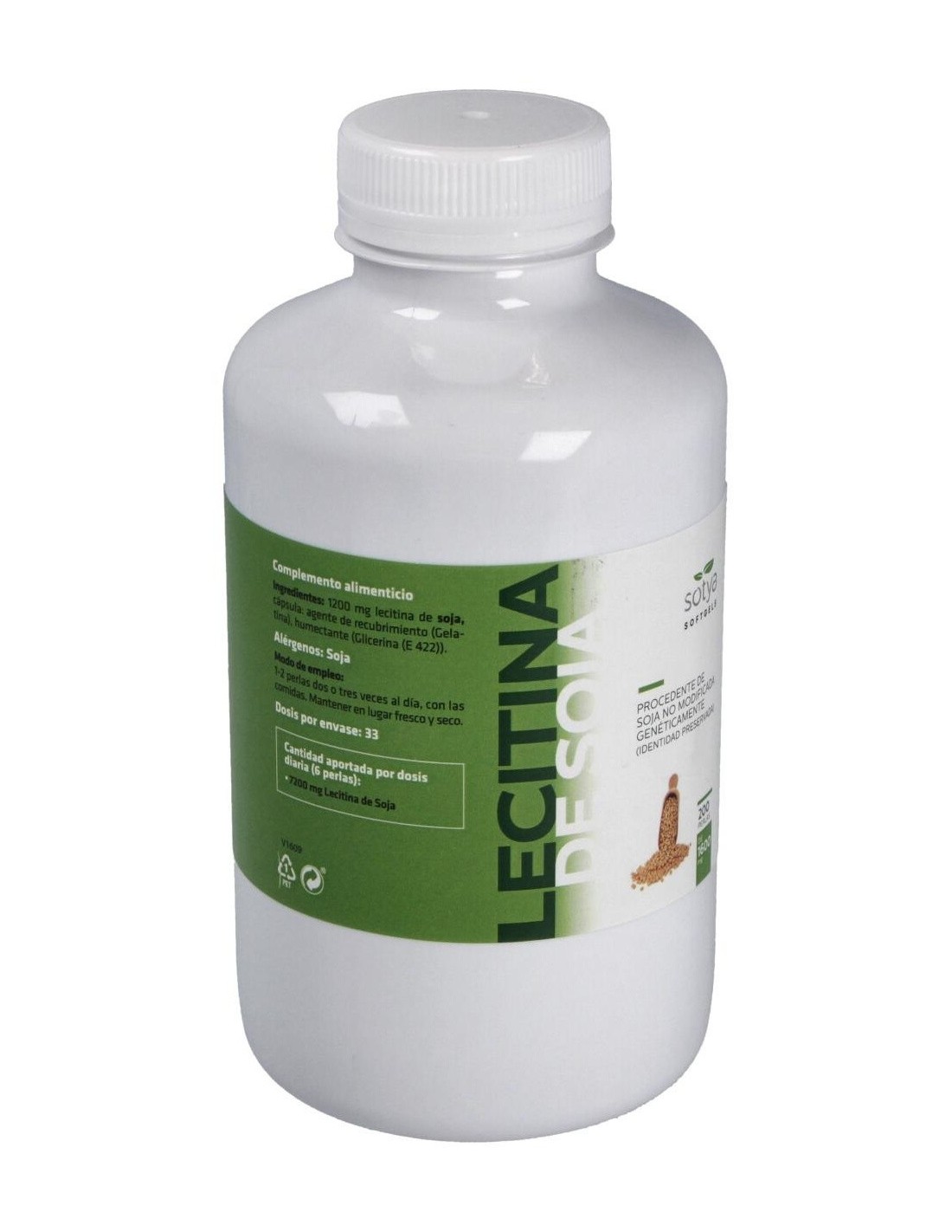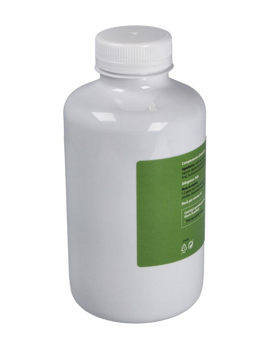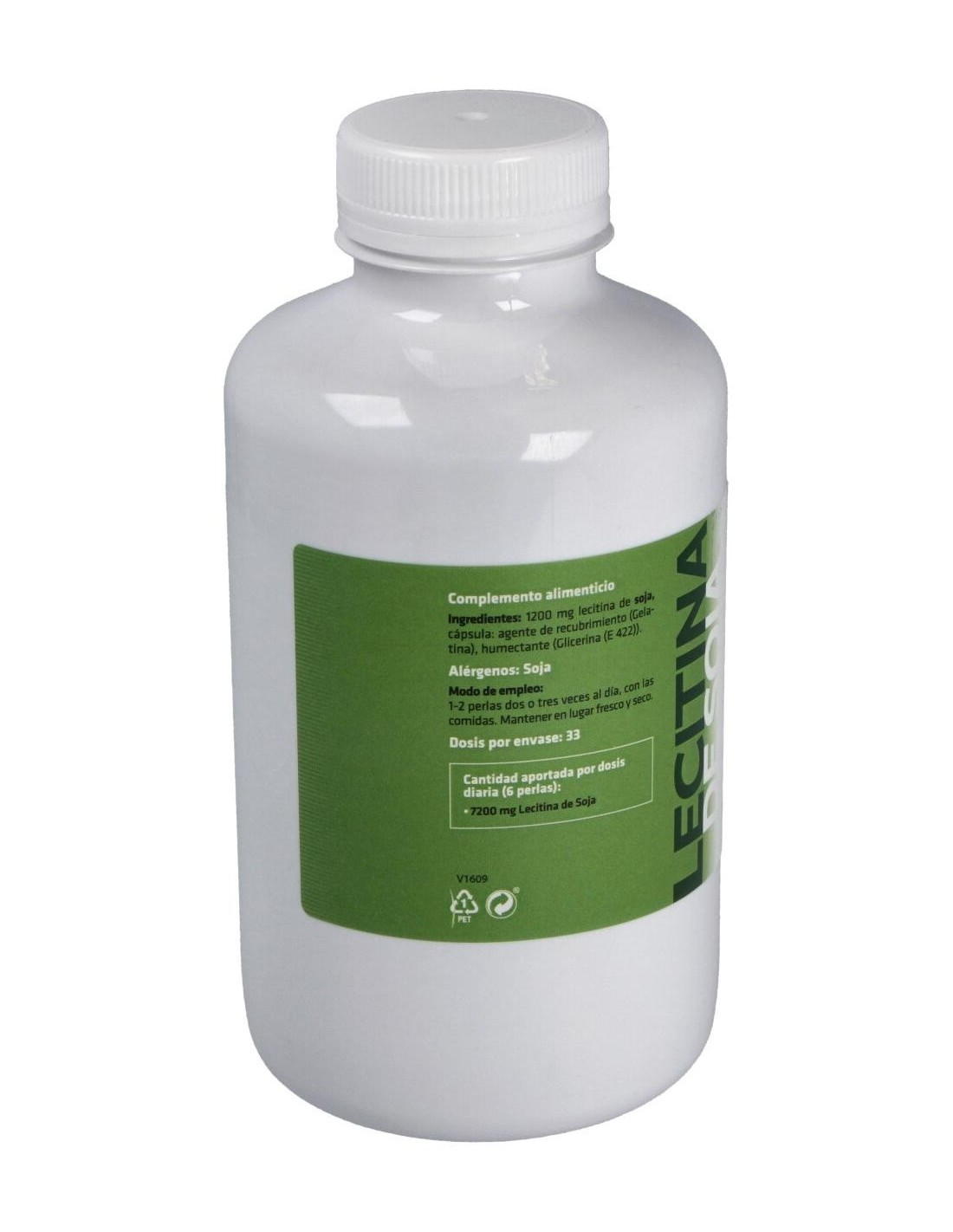 - Cada perla contiene 1600 mg de lecitina de soja, facilitando una ingesta controlada y uniforme.