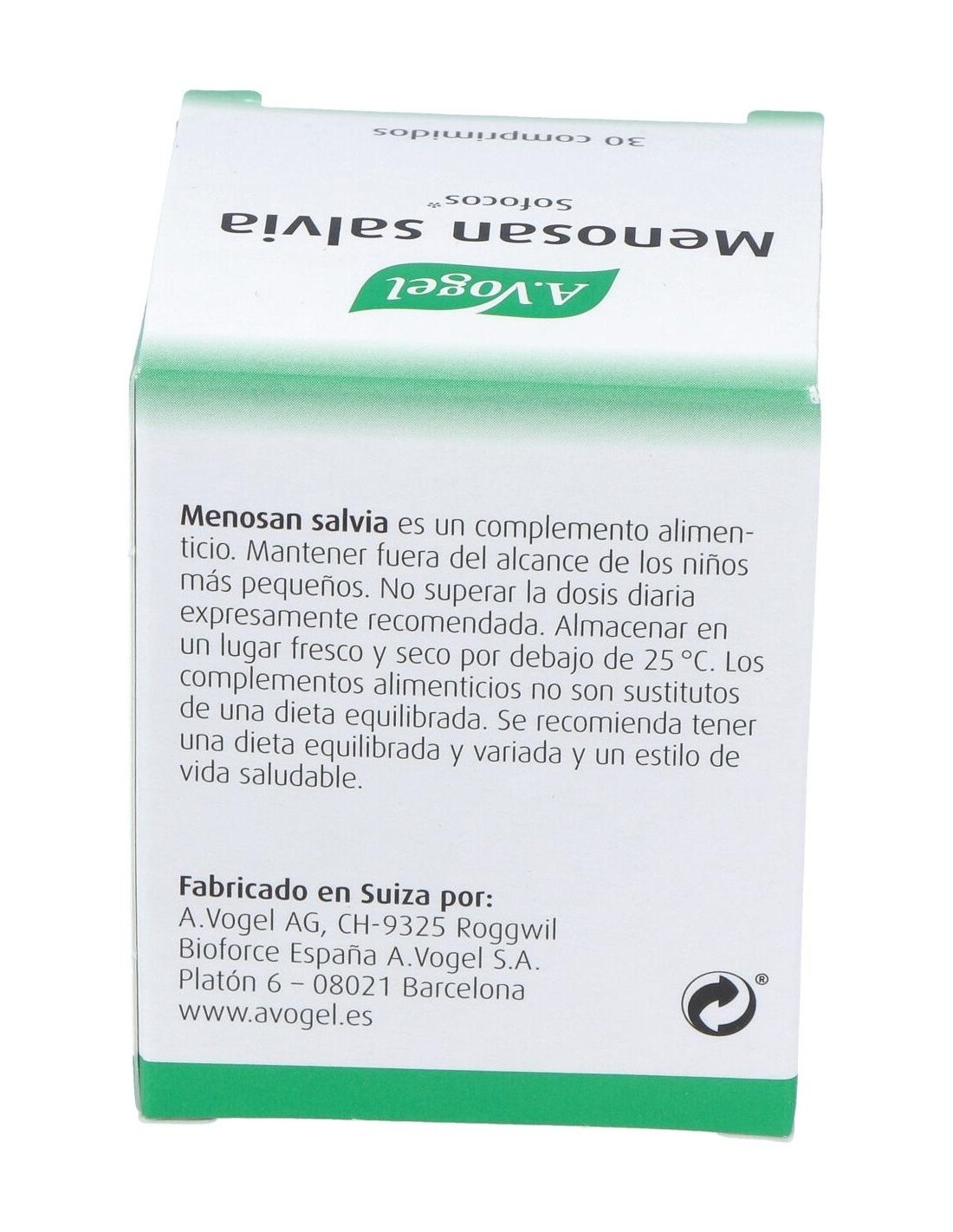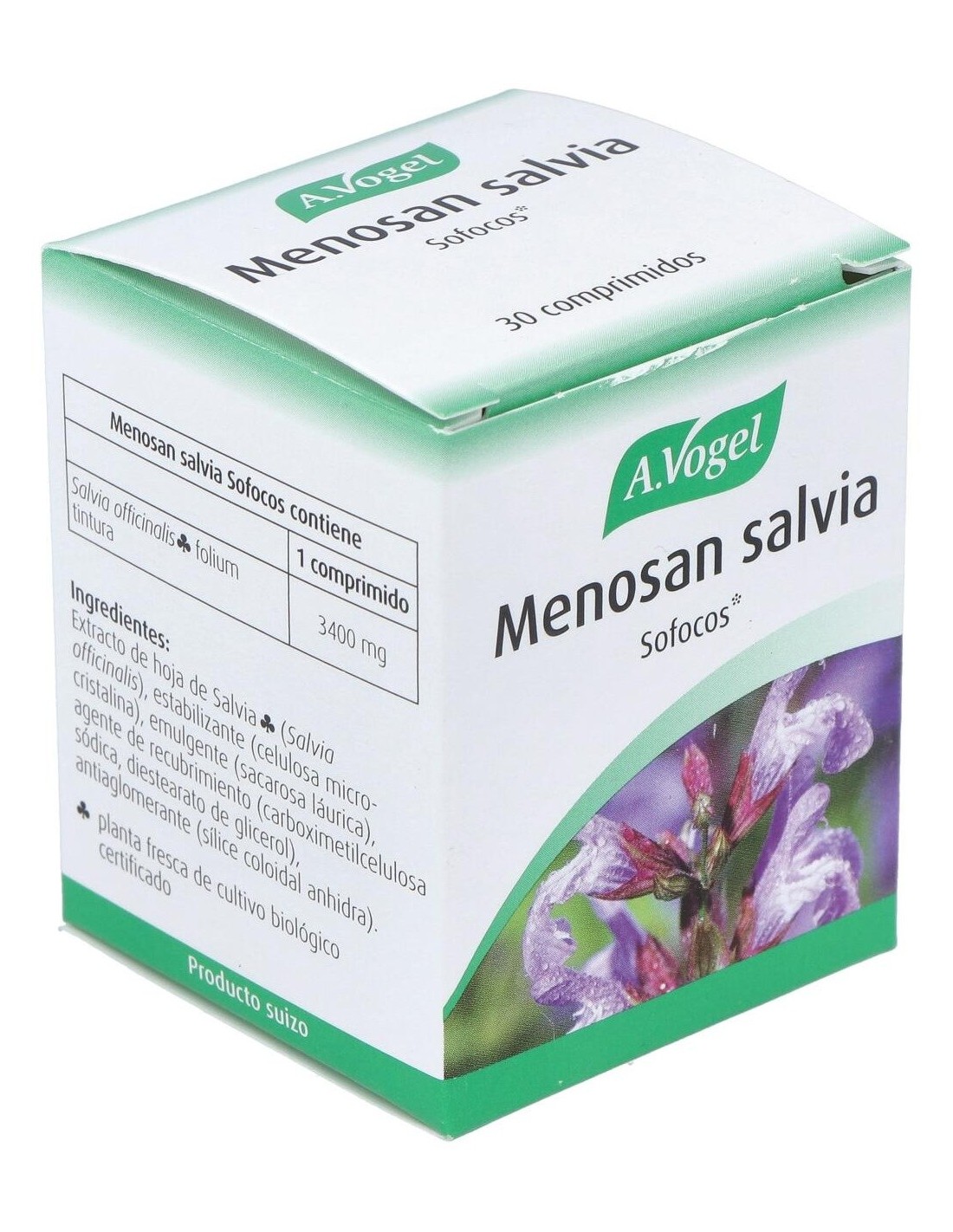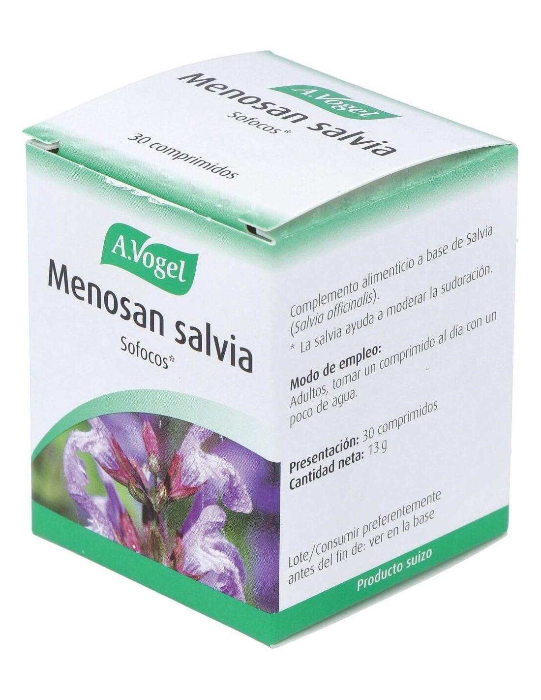 Menosan Salvia Comp. 30 de A.Vogel es un complemento natural para mujeres que buscan aliviar molestias asociadas a cambios hormonales, formulado con extracto de salvia para apoyar el bienestar diario.