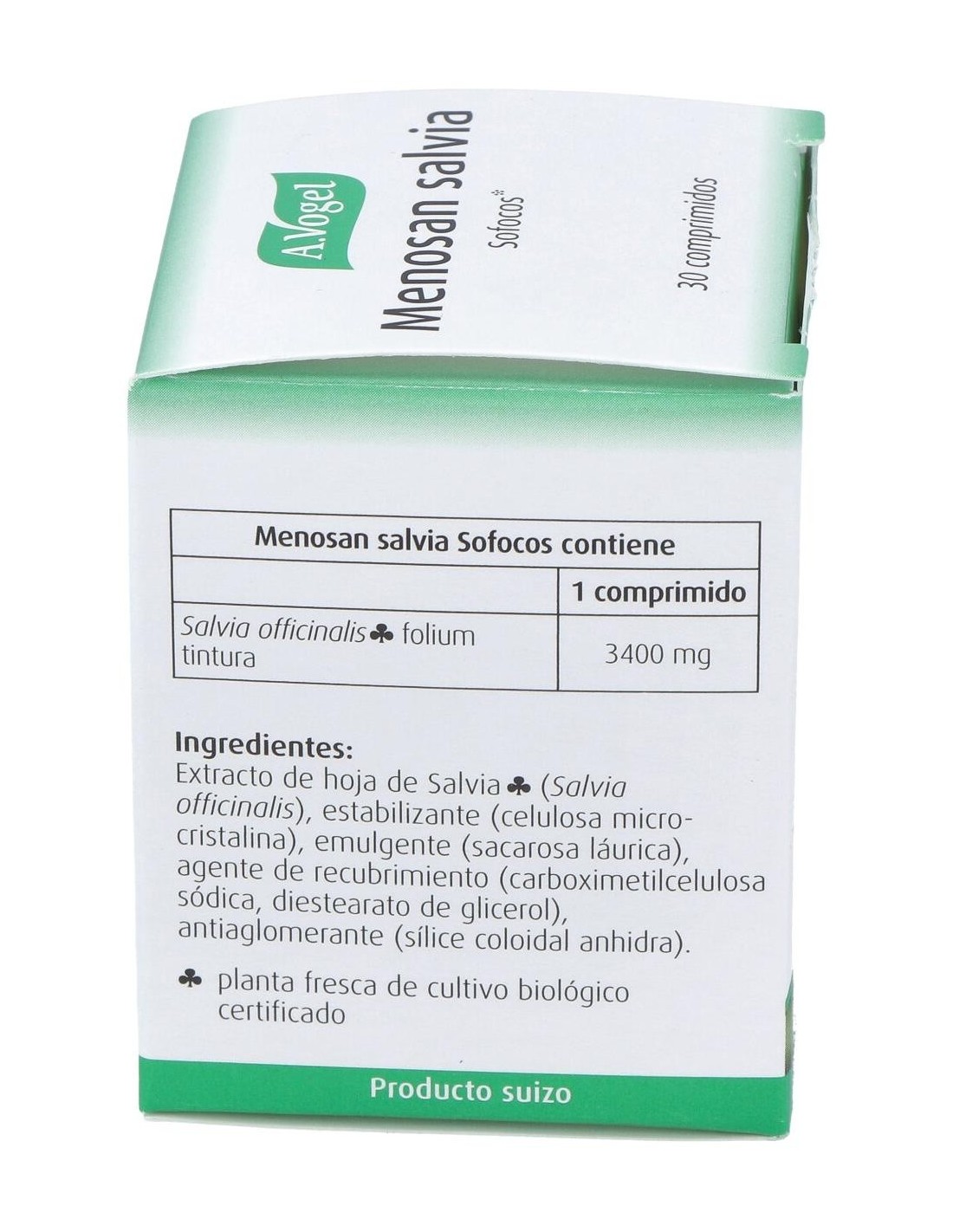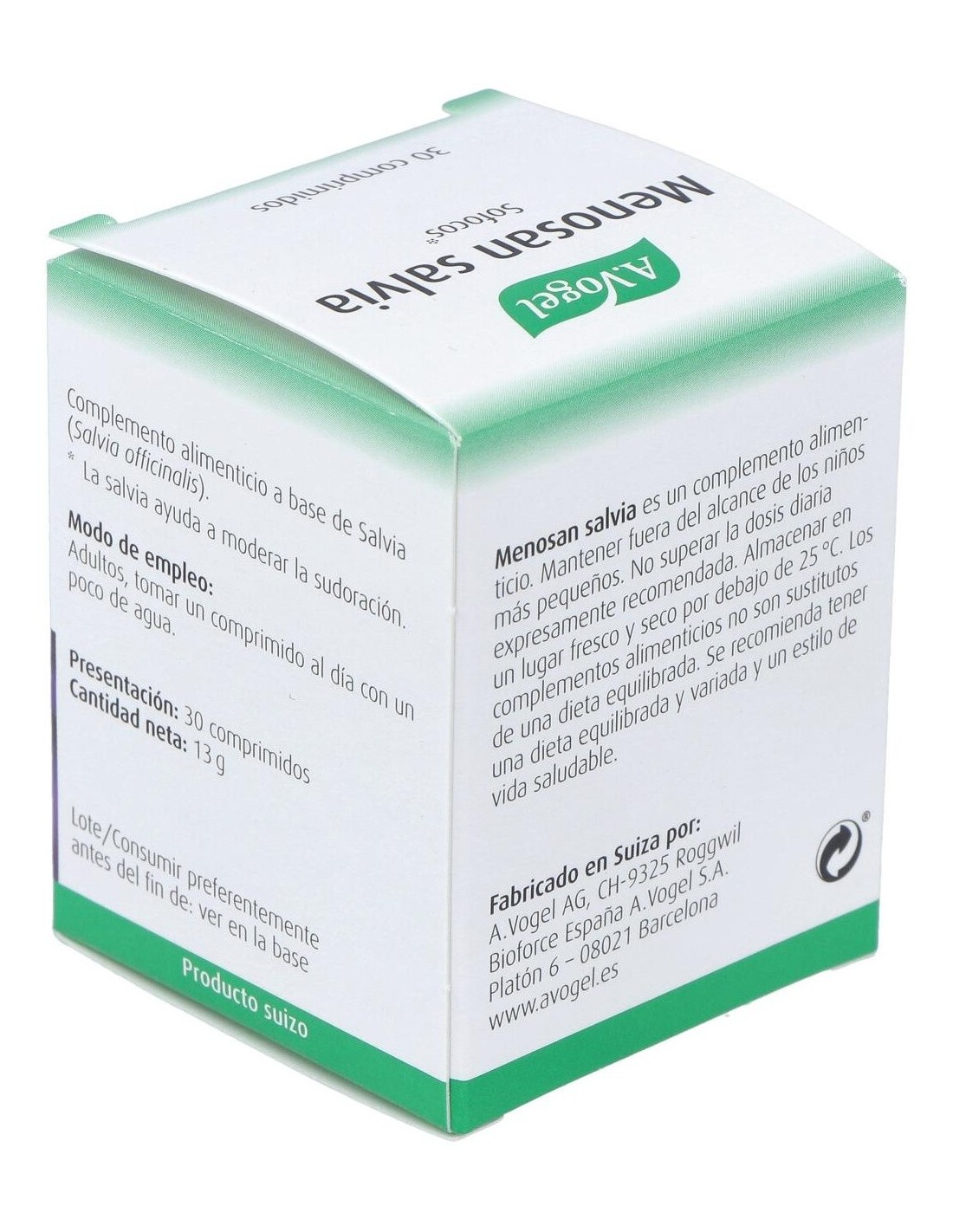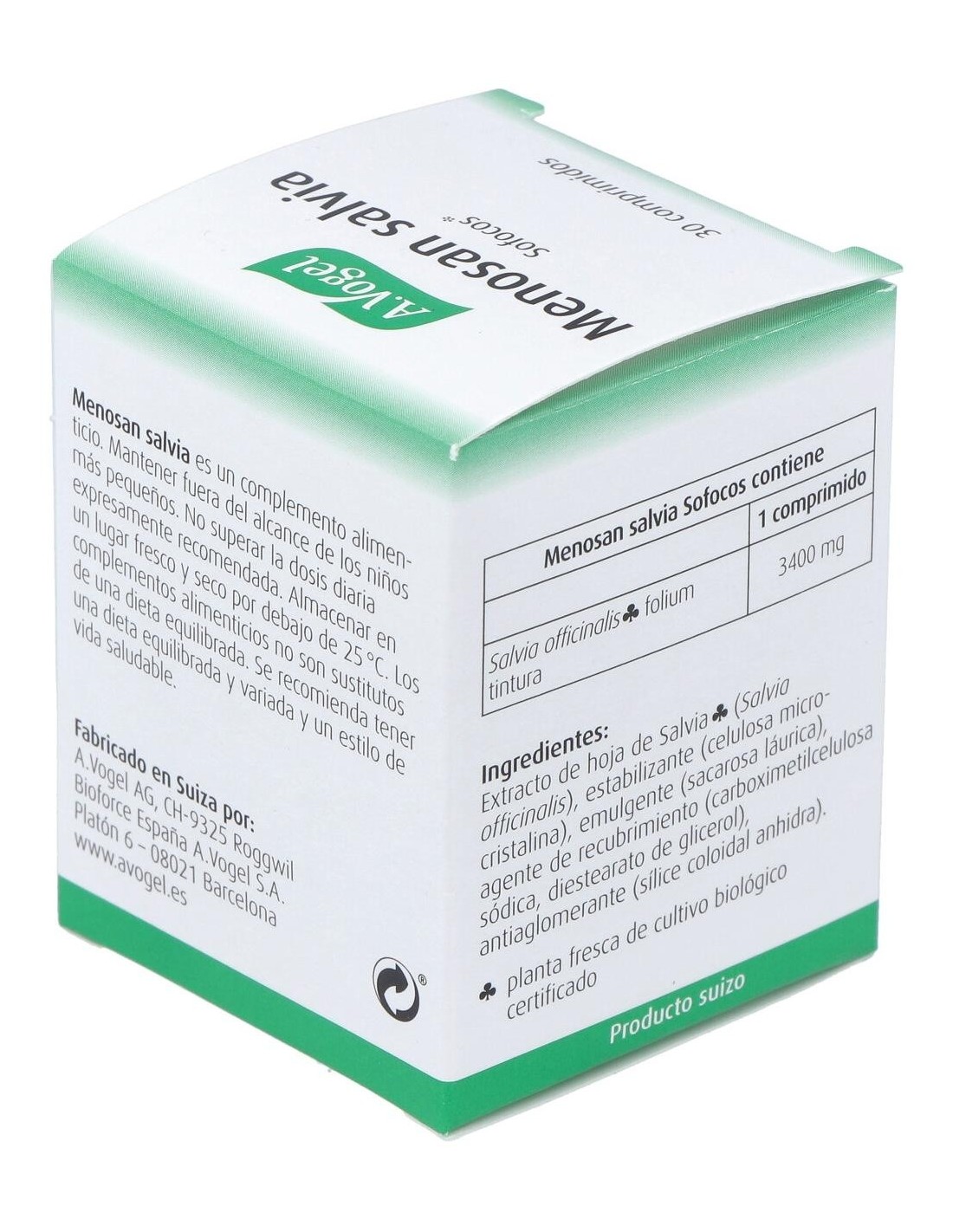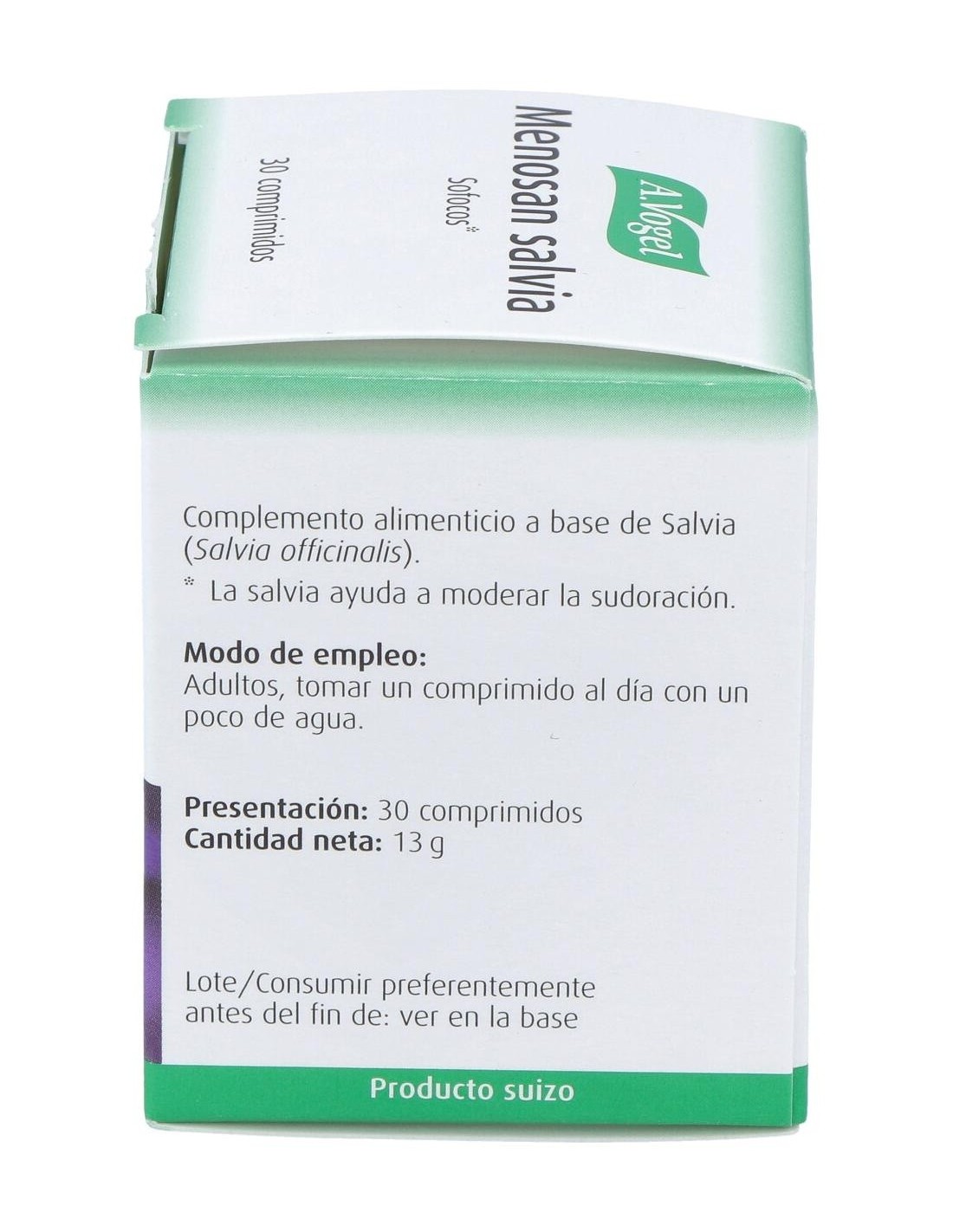 Menosan Salvia Comp. 30 de A.Vogel es un complemento natural para mujeres que buscan aliviar molestias asociadas a cambios hormonales, formulado con extracto de salvia para apoyar el bienestar diario.
