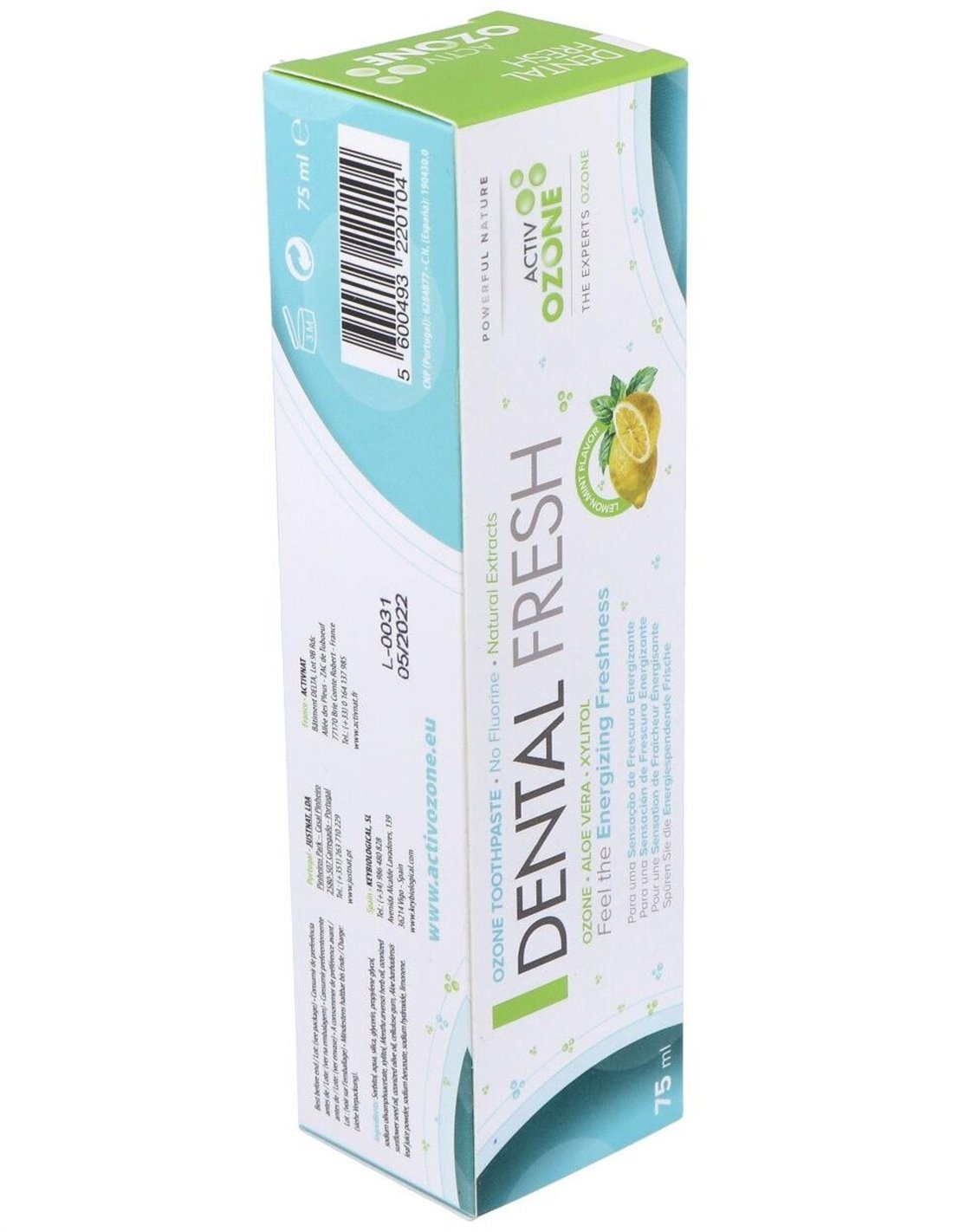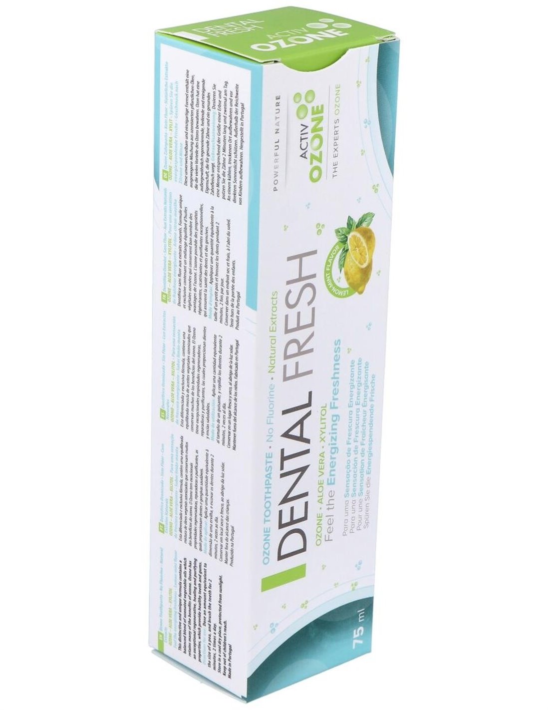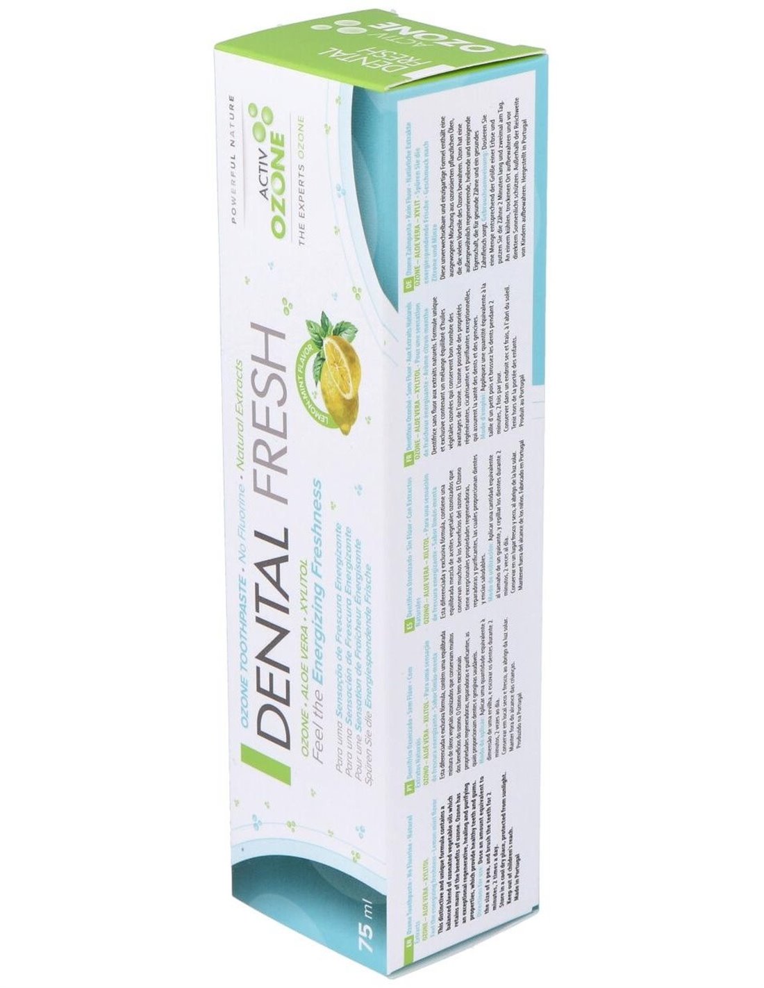 El Activozone Dental Fresh Dentífrico 75 ml es una pasta dental para adultos que ayuda a mantener una sensación de frescura y limpieza bucal, gracias a su fórmula equilibrada que contribuye al cuidado diario de dientes y encías.