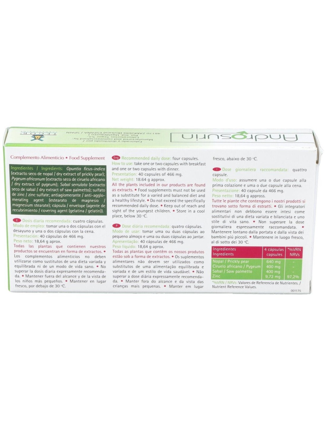 Elaborado con ingredientes de calidad, Androsurin 40 Caps (Prostacal+) de Tegor combina componentes naturales en una presentación práctica y fácil de consumir. Su diseño permite una administración cómoda, adaptándose a diferentes estilos de vida.