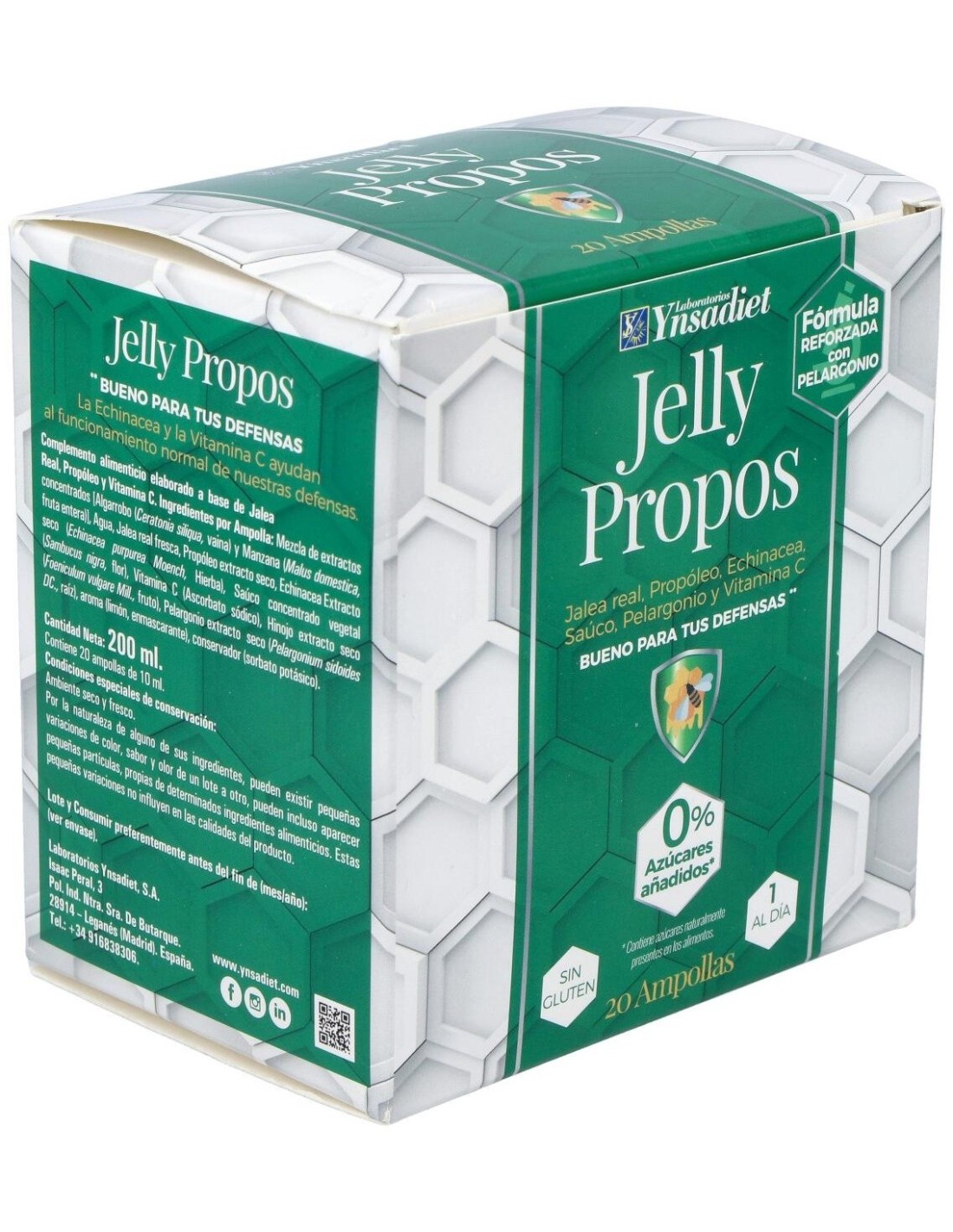 Jelly Propos 0% Azúcar 20 Amp de Ynsadiet es un complemento alimenticio diseñado para personas que buscan una opción sin azúcar para apoyar su bienestar diario. Su formulación en ampollas facilita su consumo y dosificación, adaptándose a rutinas variadas.