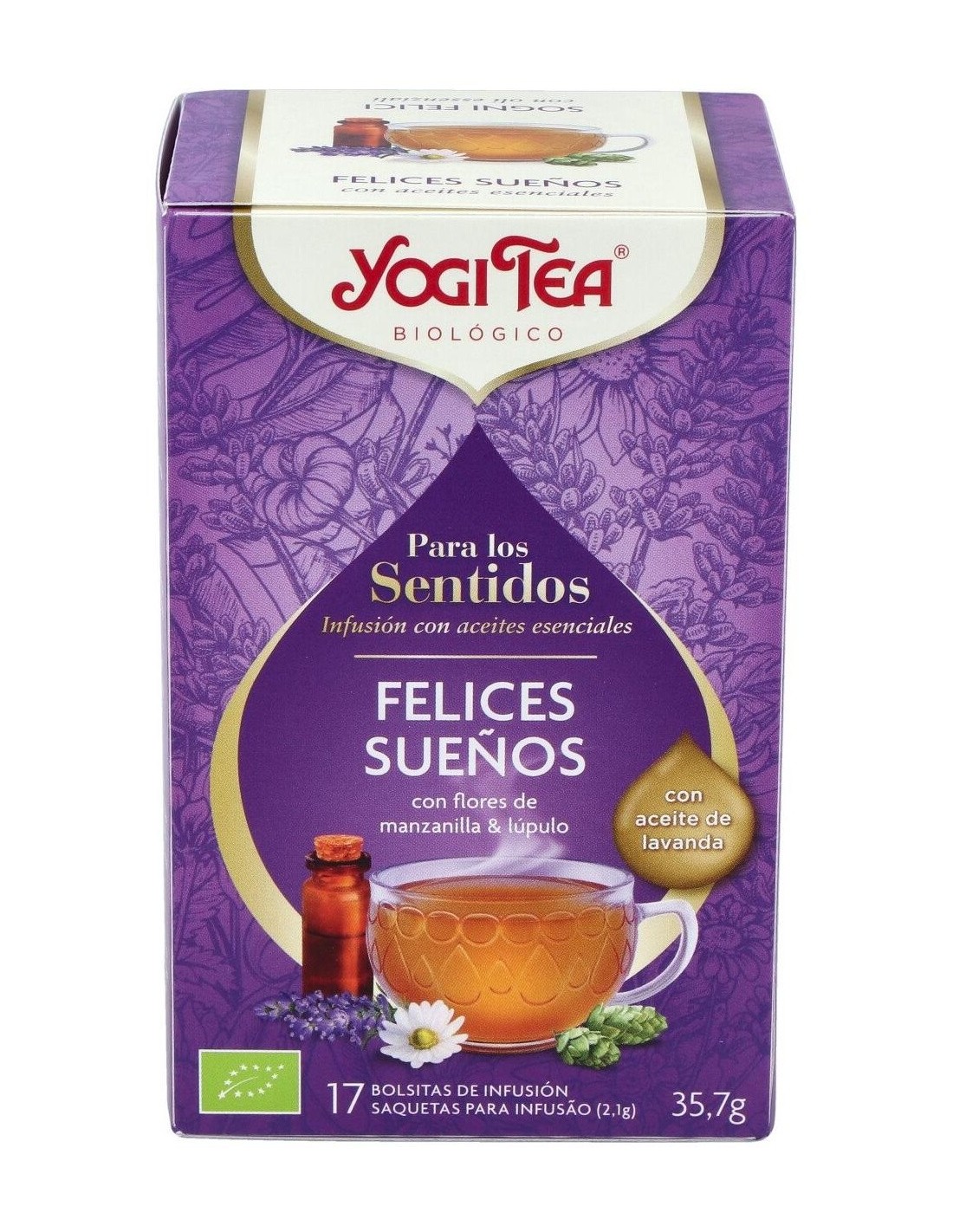 Yogi Tea Felices Sueños Para Los Sentidos es una infusión diseñada para personas que buscan relajarse antes de dormir. Ofrece una mezcla de hierbas naturales que contribuyen a una sensación de calma y bienestar.