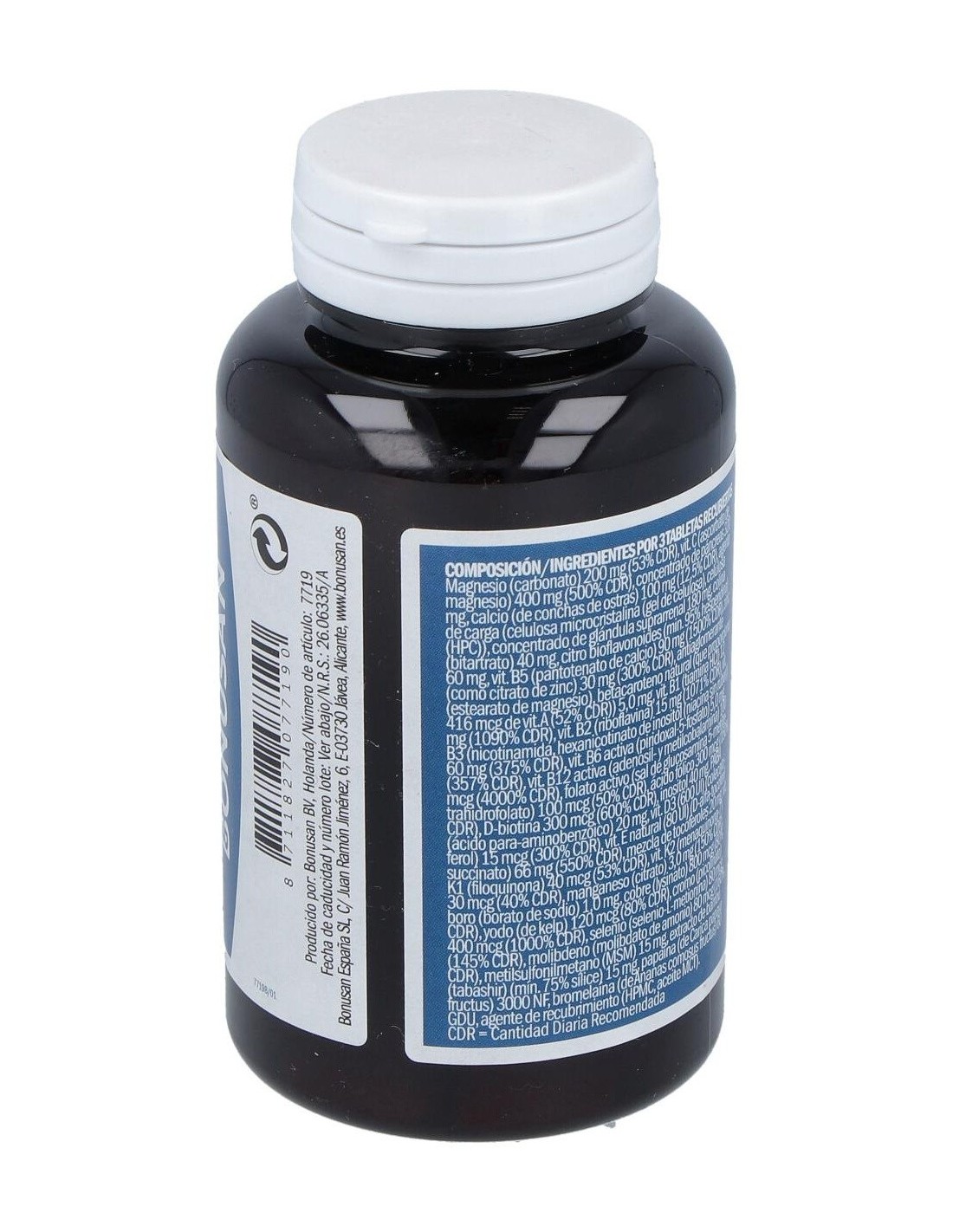 Las vitaminas C, B6, B12 y el ácido fólico están presentes en su forma activa. Esta forma proporciona una alta biodisponibilidad adicional. Esto significa que estas vitaminas son mejor absorbidas por el cuerpo y en mejores condiciones para facilitar su eficacia. Los minerales ligados orgánicamente de este multi-preparado también tienen una absorción excelente. Composición por 3 comprimidos: