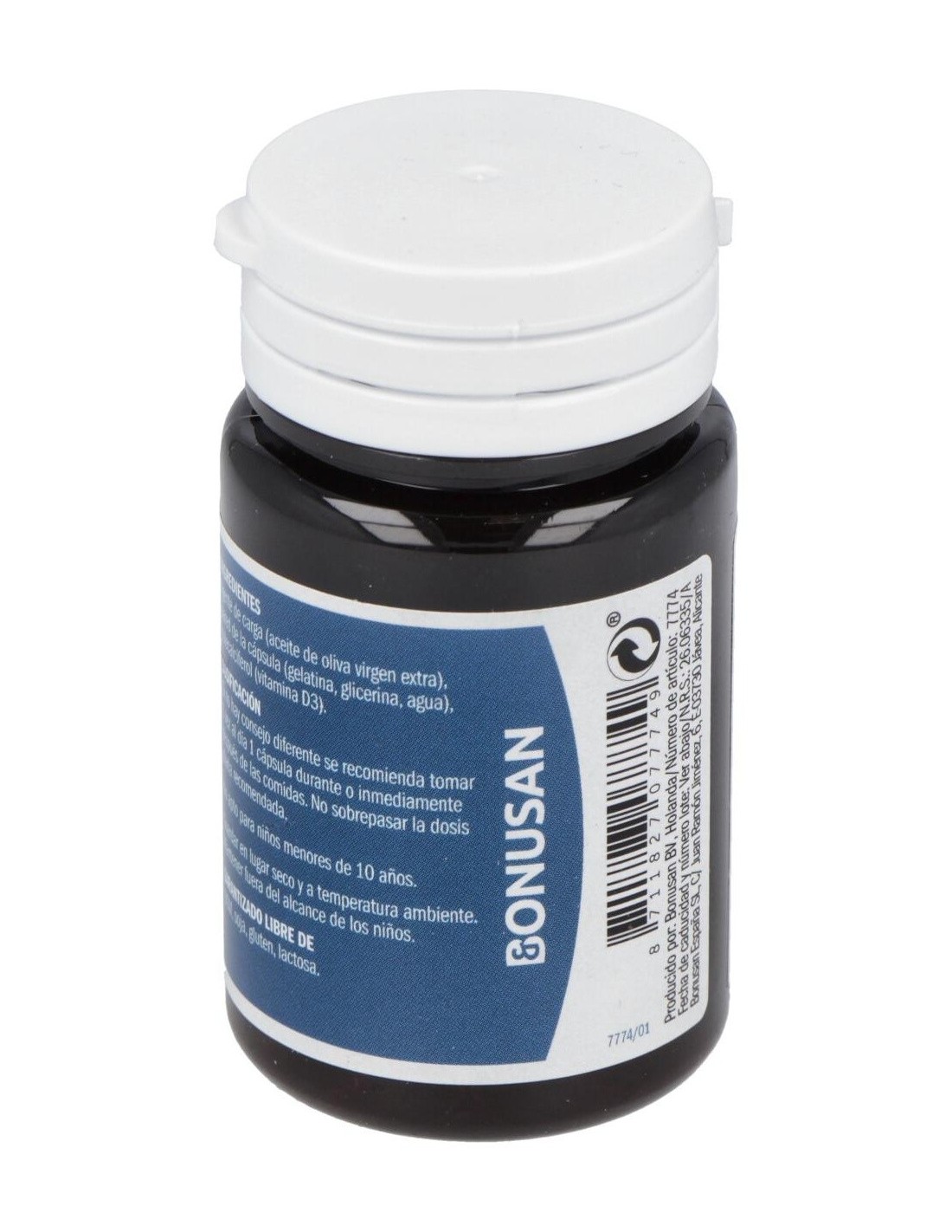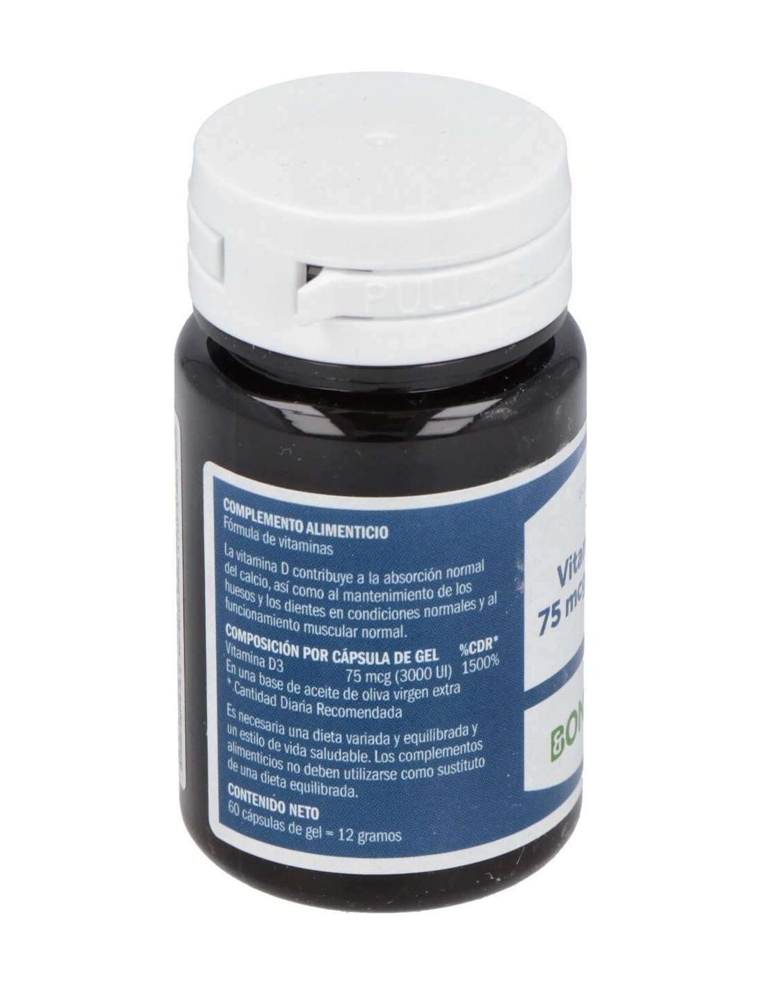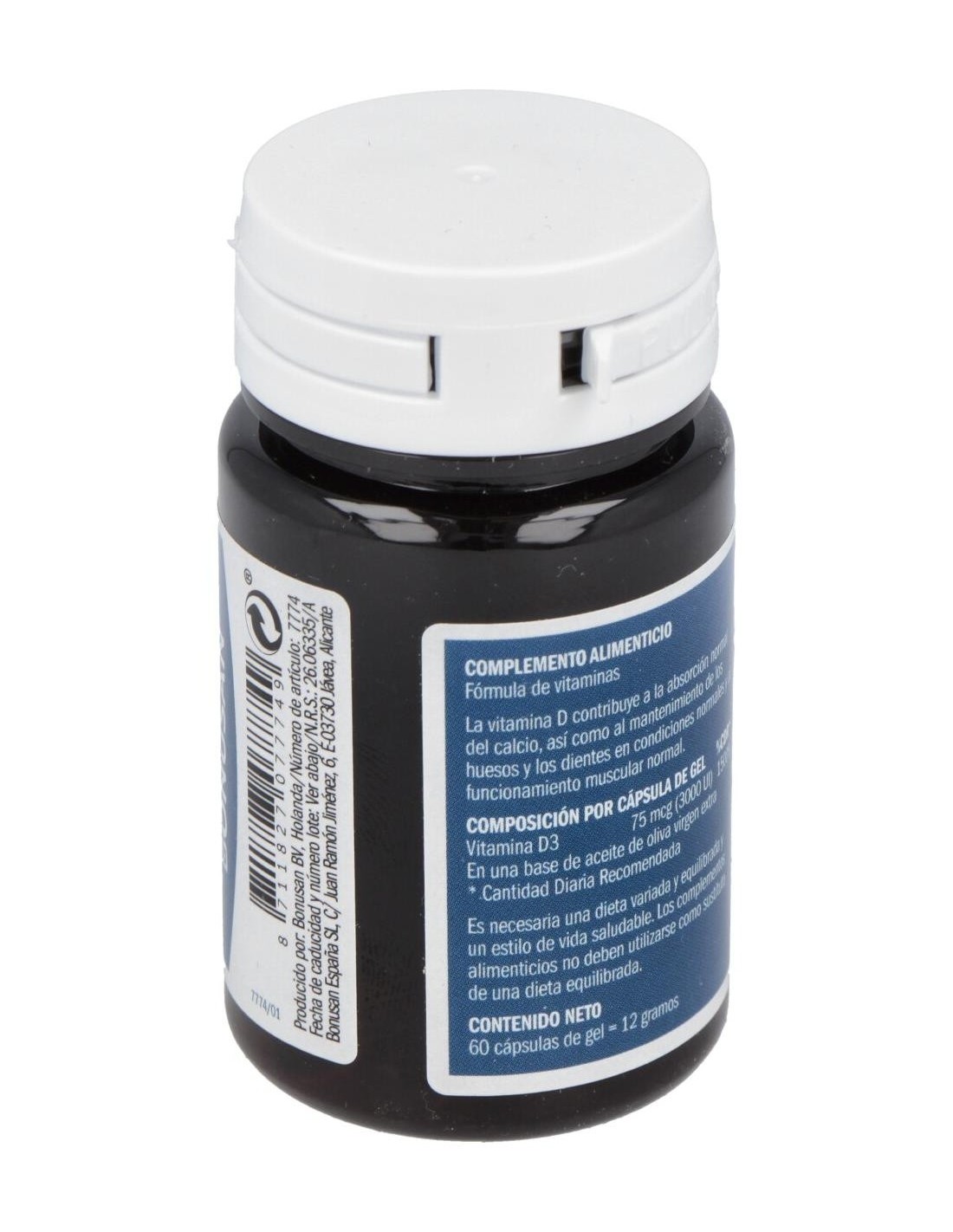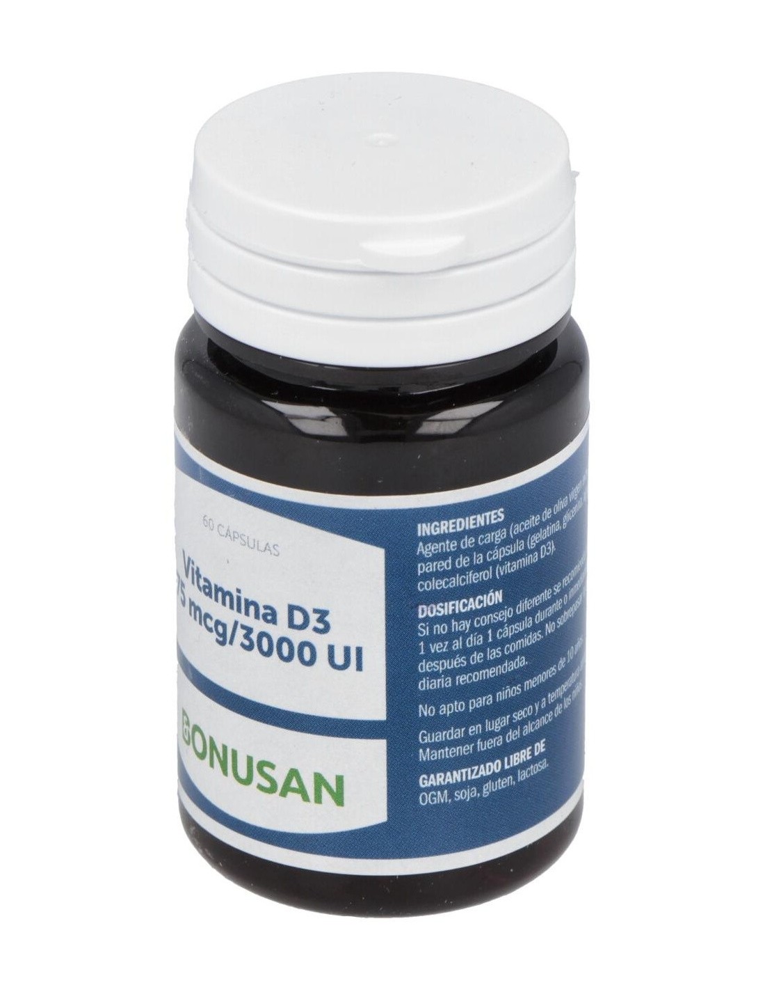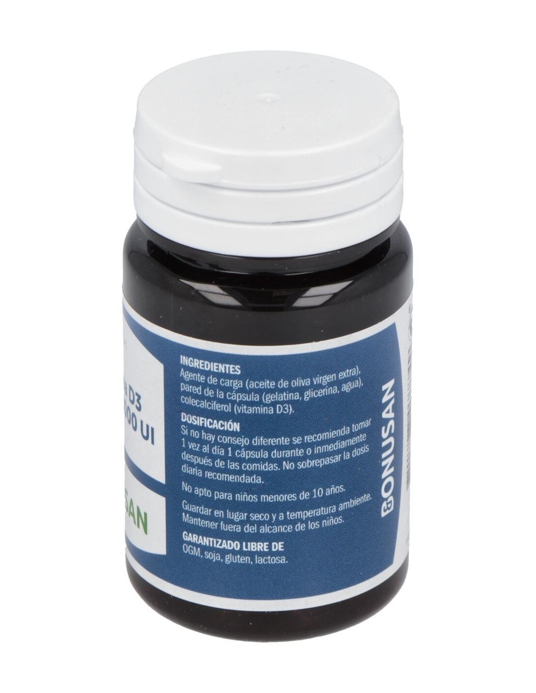 Aceite de oliva virgen (Olea europaea), pared de la cápsula (gelatina bovina, glicerina, agua), colecalciferol.