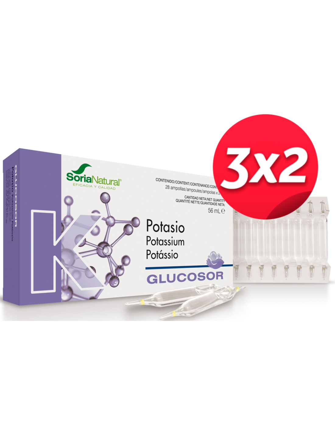 Pack 3X2 Glucosor Potasio 28Amp. de Soria Natural