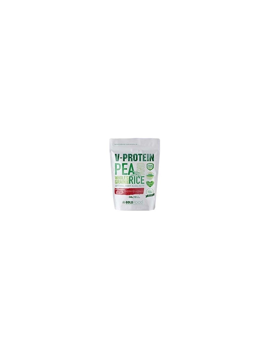 Vegan V-Protein GoldNutrition® es un producto rico en proteínas vegetales (72-78%) provenientes del guisante y del arroz, lo que permite que su composición incluya todos los aminoácidos esenciales para el organismo, sin azúcares añadidos, contiene menos de 1 g de azúcar por batido. Esta fórmula ha sido enriquecida con bromelina, una enzima natural extraída de la piña, que permite optimizar la digestión de las proteínas. Tiene efecto saciante y ayuda a controlar el apetito.