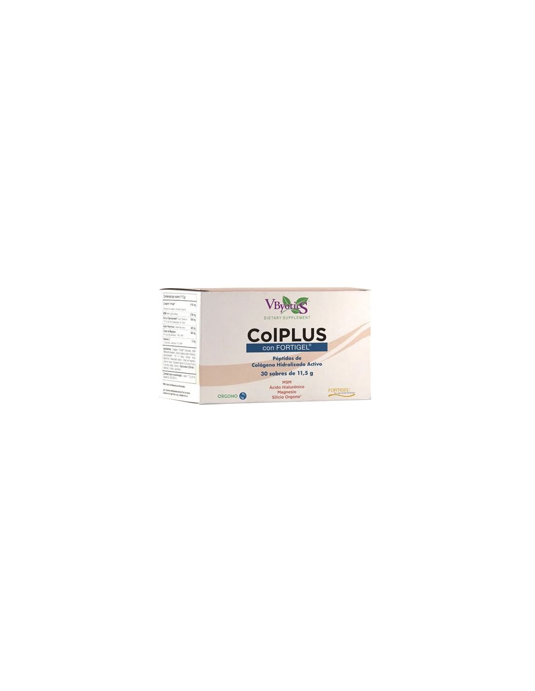 ColPLUS con Fortigel de VByotics es un complemento alimenticio con Colágeno Hidrolizado, MSM, Ácido Hialurónico y Silicio.Fortigel®, un innovador ingrediente para la regeneración del cartílago articular que ayuda a las personas que sufren este padecimiento. Activa el crecimiento de nuevo cartílago mediante la estimulación de las células, lo que alivia las molestias articulares, suaviza y da movilidad a las articulaciones.La efectividad de Fortigel® ha sido demostrada científicamente en numerosos estudios que han demostrado que, al administrarse oralmente, es absorbido por los intestinos para después acumularse en el cartílago. La ingesta de Fortigel® estimula, estadísticamente, un significativo aumento del metabolismo del cartílago.Composición activa por sobre: