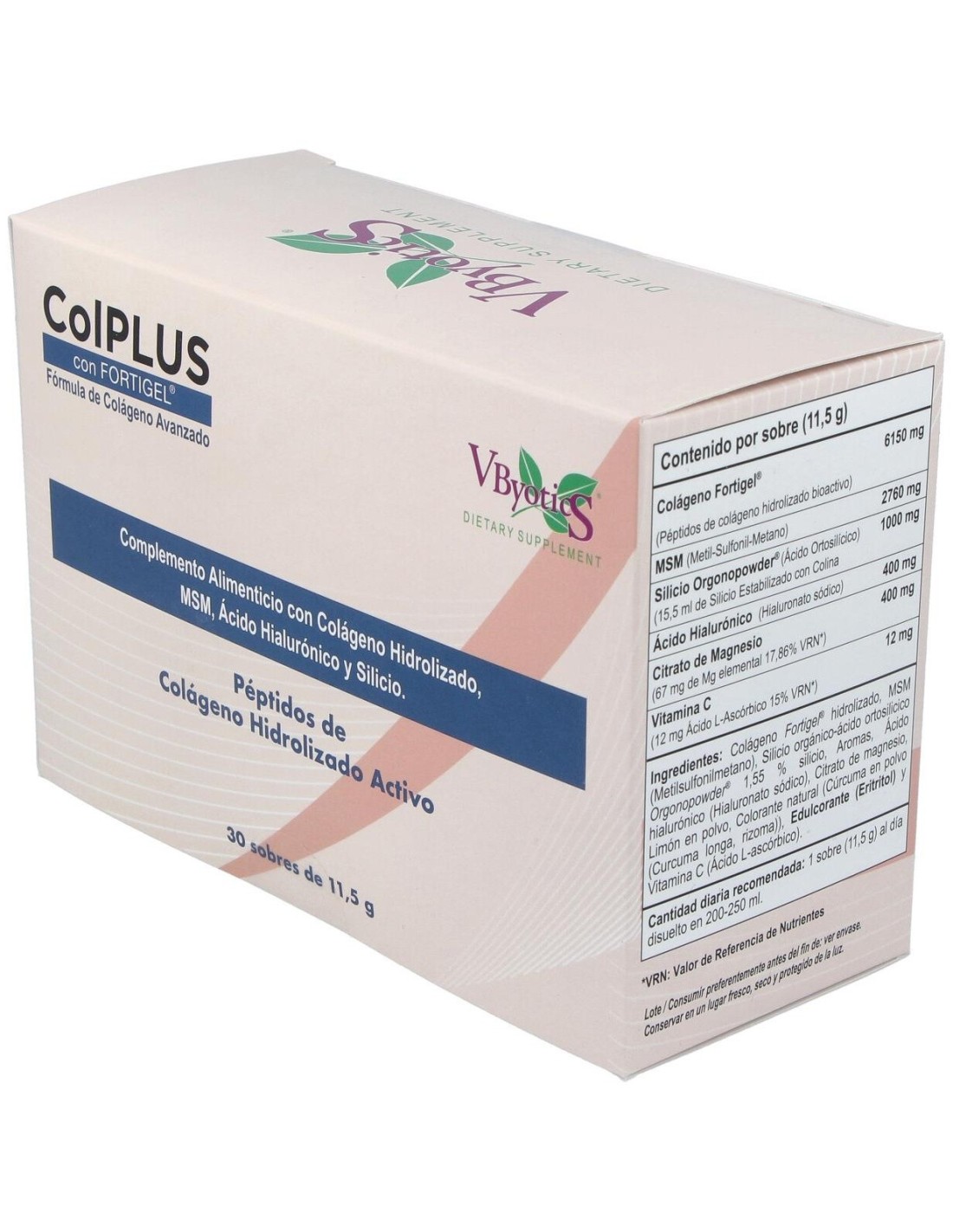 ColPLUS con Fortigel de VByotics es un complemento alimenticio con Colágeno Hidrolizado, MSM, Ácido Hialurónico y Silicio.Fortigel®, un innovador ingr