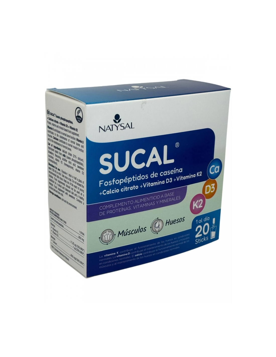 Sucal (Fosfopéptidos De Caseína+Calcio Citrato+D3+K2) 20 Sticks de Natysal