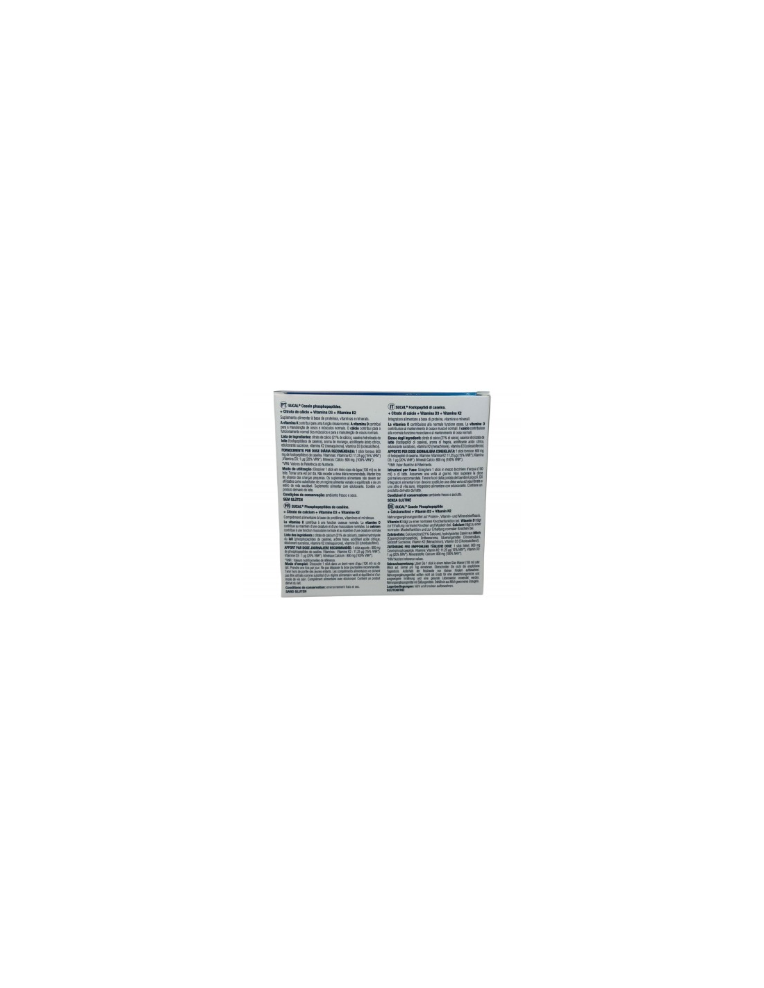 La fórmula avanzada de Sucal incluye fosfopéptidos de caseína, calcio citrato, vitamina D3 y vitamina K2, componentes esenciales que contribuyen a la absorción eficiente del calcio y a la formación de huesos fuertes. Los fosfopéptidos de caseína actúan como transportadores naturales, facilitando que el calcio llegue directamente a los huesos, mientras que el calcio citrato es una forma altamente absorbible que garantiza un aporte óptimo.
