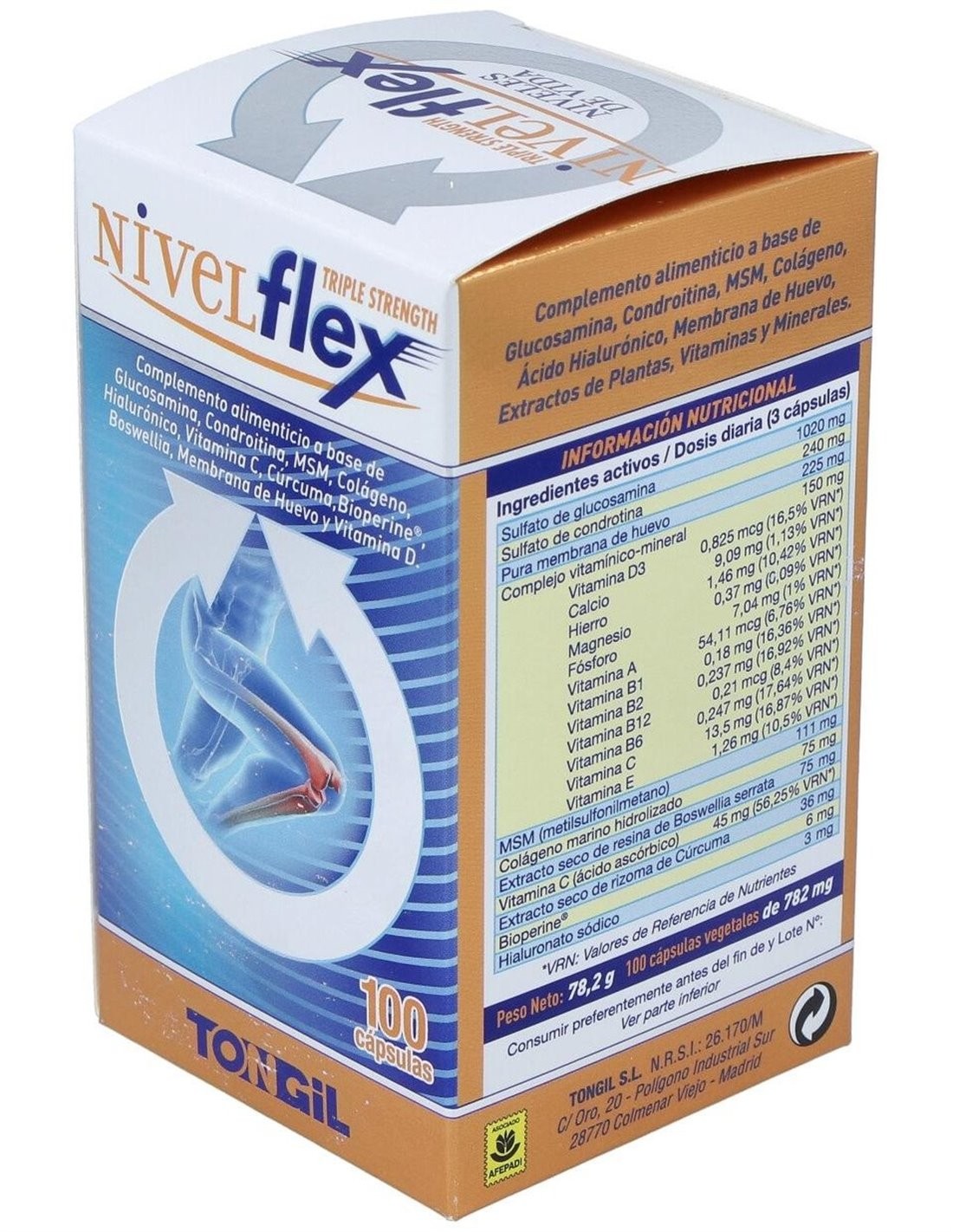 El Nivelflex 100Cap. de Tongil es un suplemento dirigido a personas que buscan apoyar el bienestar articular. Con su fórmula específica, contribuye a mantener la movilidad y flexibilidad de las articulaciones.