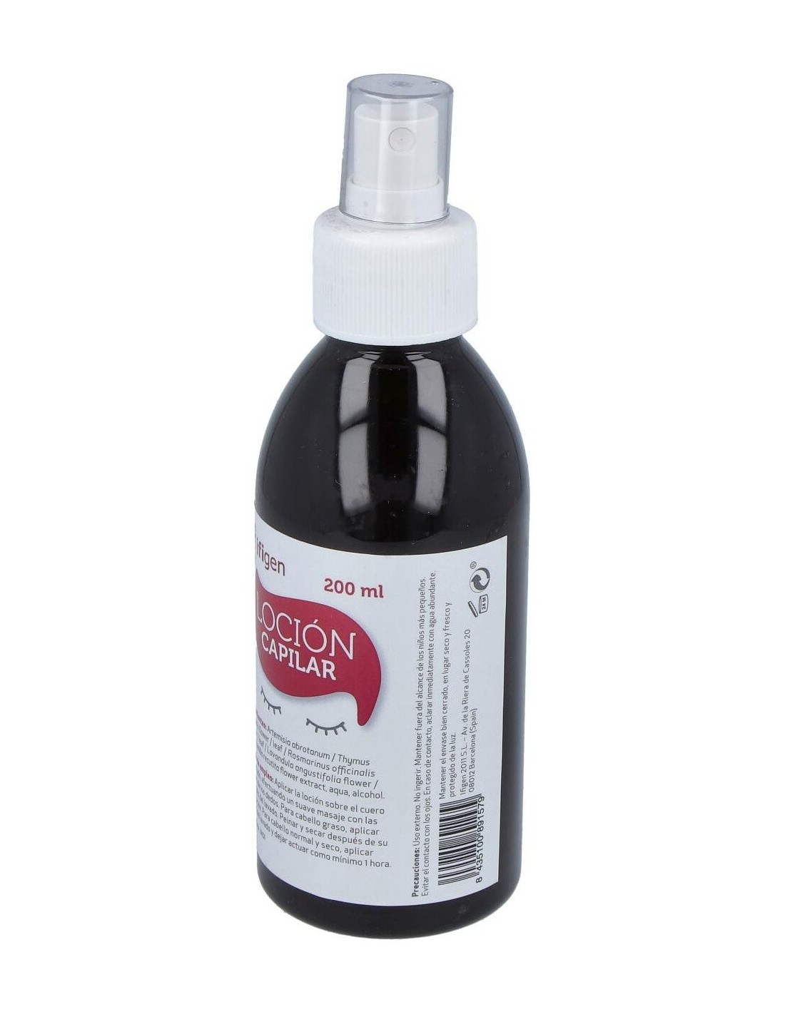 Loción capilar de efecto fortificante, elaborado a base de extractos naturales de artemisa, tomillo, romero, lavanda y camomila, que es apto para su uso en todo tipo de cabello, y que contribuye a prevenir y controlar la caída del cabello. Muy útil también en casos de dermatitis en el cuero cabelludo o caspa.