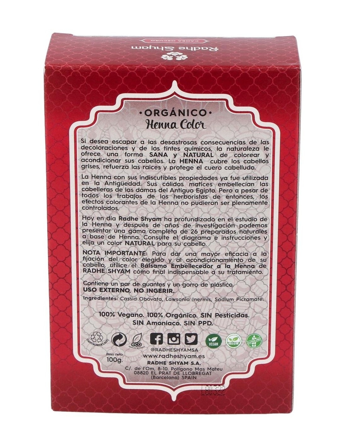 HENNA POLVO CAOBA OSCURO 100gr. de RADHE SHYAM