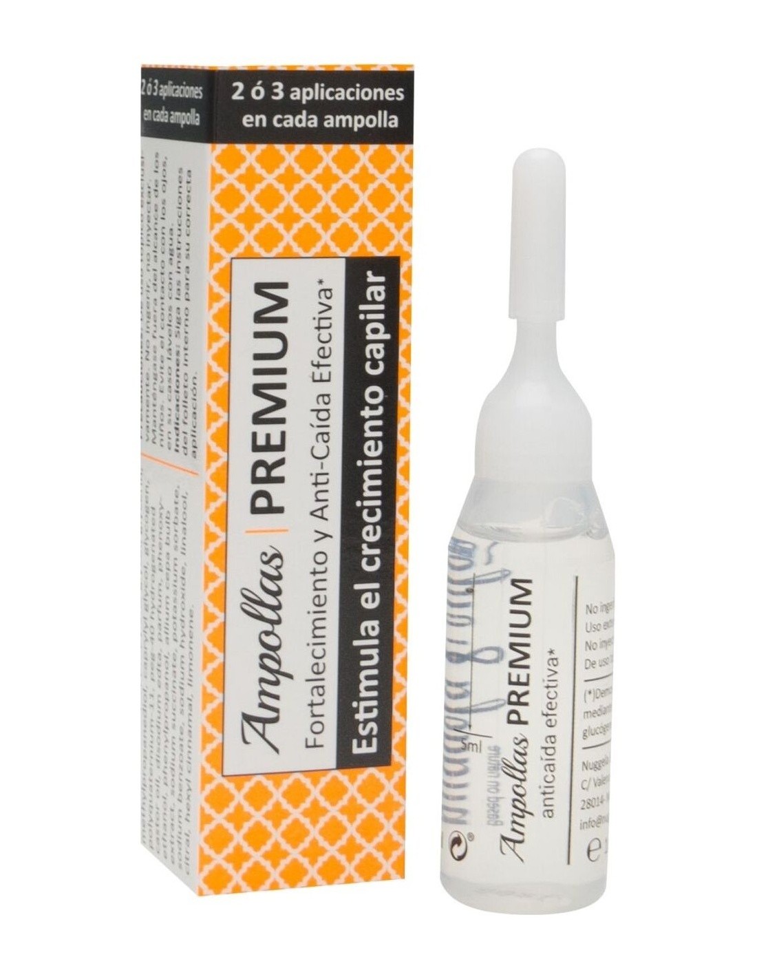 Anticaída efectiva: Aplicar 1/2 ampolla cada tres días durante 2 meses y lavar el cabello con el Champú Nuggela & Sulé. (Mínimo 24 aplicaciones. Total 12 ampollas).