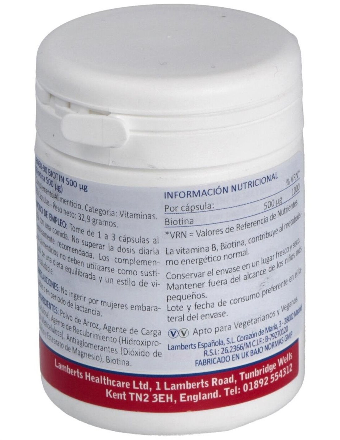 Apto para vegetarianos y veganos y exento de lactosa y gelatina. Nota de alérgenos
