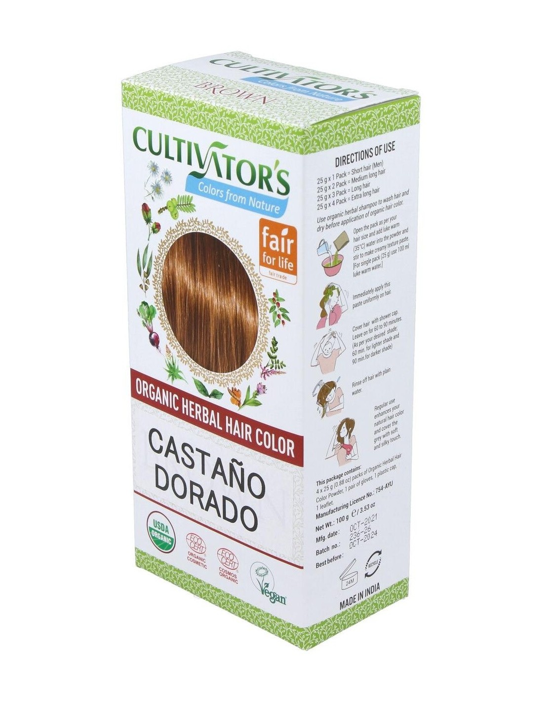 Castaño Dorado Tinte Organico 100Gr. Ecocert de Cultivators