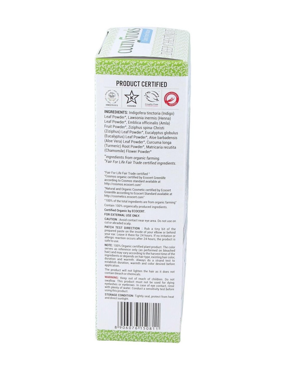 Indigofera tinctoria (Indigo)* , Lawsonia inermis (Henna)* , Emblica officinalis (Amla)* , Ziziphus spina-Christi (Ziziphus)* , Eucalyptus globulus (Eucalyptus)*, Aloe barbadensis (Aloe Vera)*, Curcuma longa (Turmeric)*, Matricaria recutita (Chamomile)*