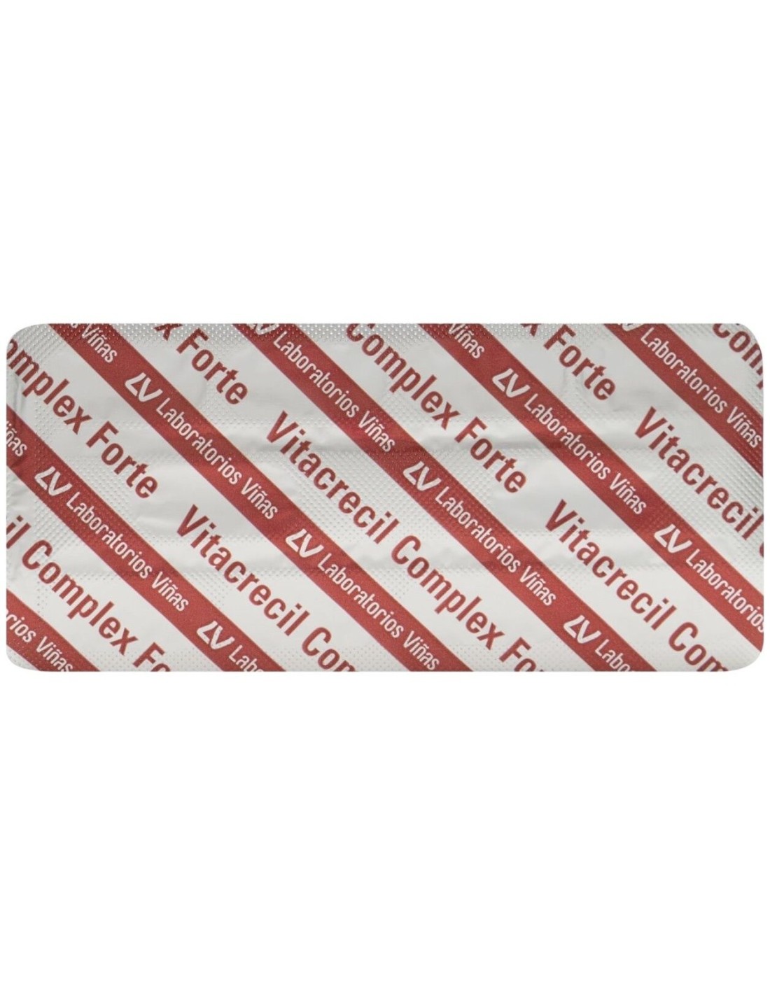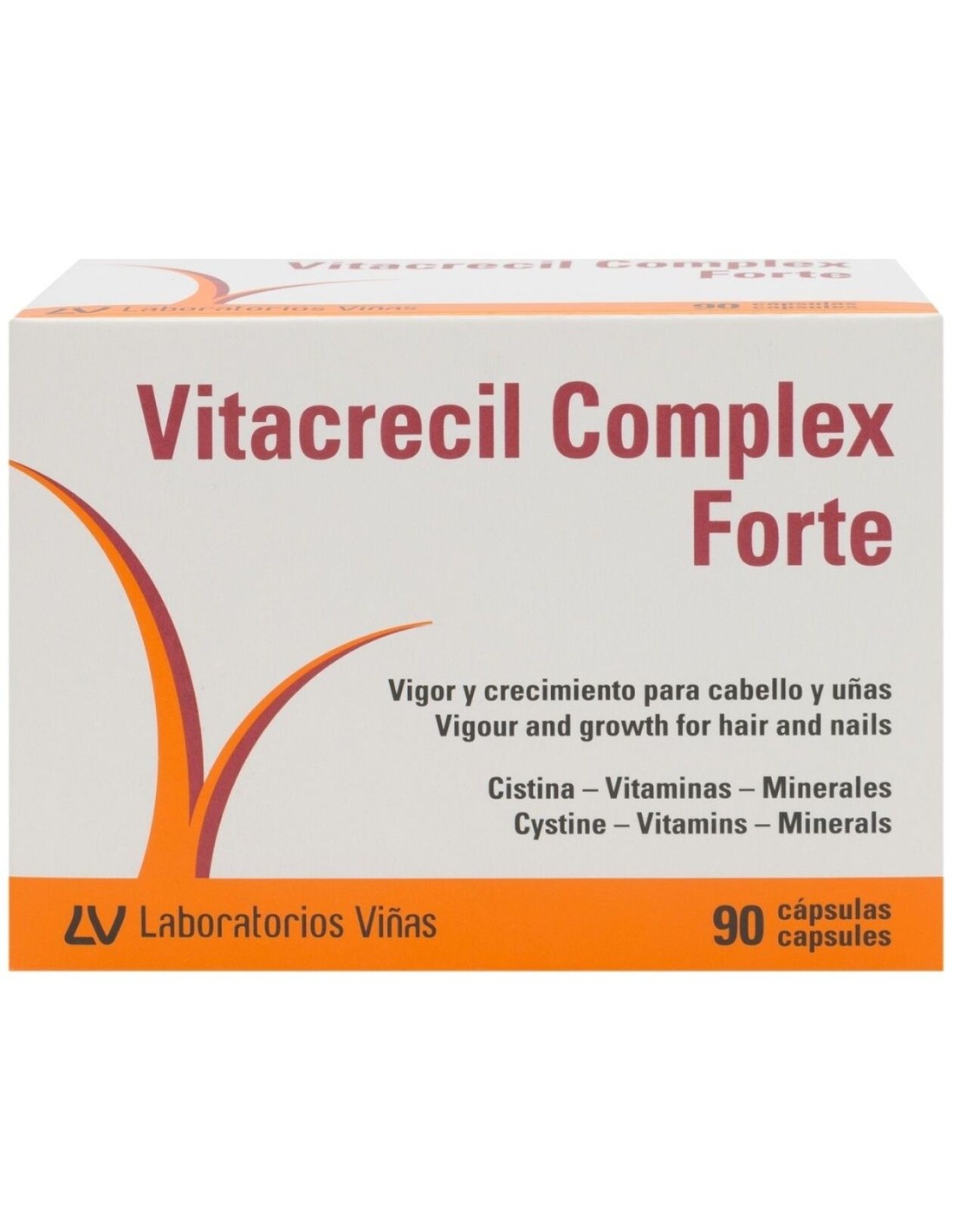 Vitacrecil Complex Forte es un complemento alimenticio con una combinación equilibrada de elementos nutritivos para la nutrición de cabellos y uñas. Vitacrecil Complex Forte es una fórmula reforzada que contiene L-cistina, ácido pantoténico, vitamina B6, biotina, hierro y zinc, con un mayor contenido en L-cistina y hierro. Una ingesta adecuada de zinc es uno de los factores que ayudan a mantener el cabello y las uñas en condiciones normales. La biotina es una vitamina cuyo aporte dietético suficiente contribuye al normal mantenimiento del cabello. La cistina es un aminoácido azufrado constitutivo de la queratina. Apto para intolerantes a la lactosa.