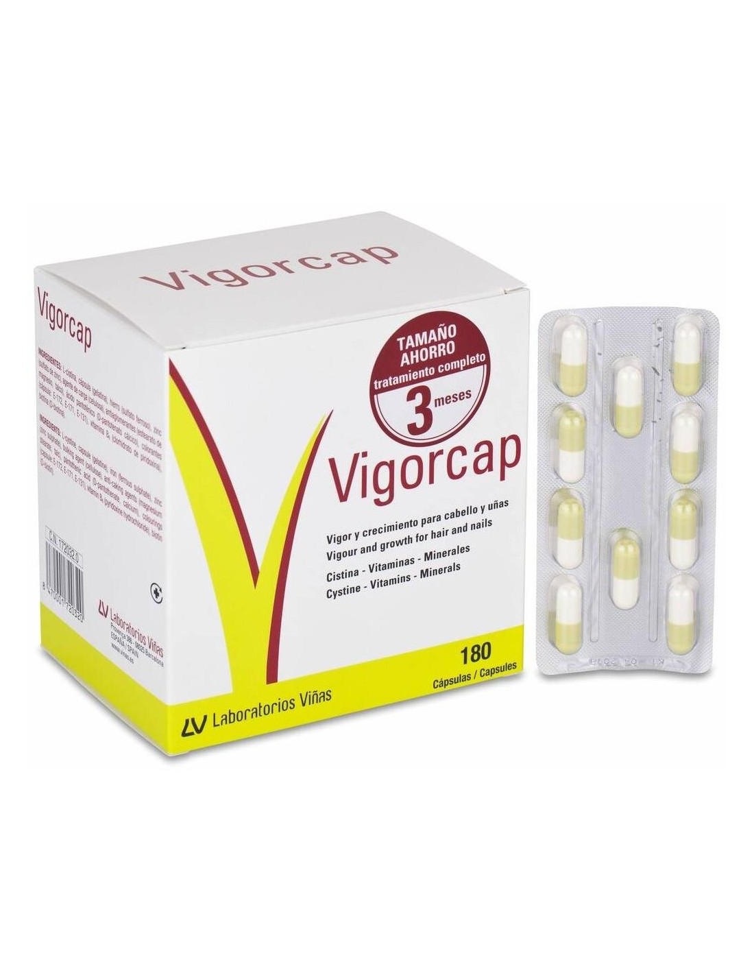 Vigorcap es un complemento alimenticio con una combinación equilibrada de elementos nutritivos para la nutrición de cabellos y uñas. Contiene L-cistina, zinc, hierro, ácido pantoténico, vitamina B6 y biotina. Una ingesta adecuada de zinc es uno de los factores que ayudan a mantener el cabello y las uñas en óptimas condiciones. La biotina es una vitamina cuyo aporte dietético suficiente contribuye al normal mantenimiento del cabello. La cistina es un aminoácido azufrado constitutivo de la queratina.