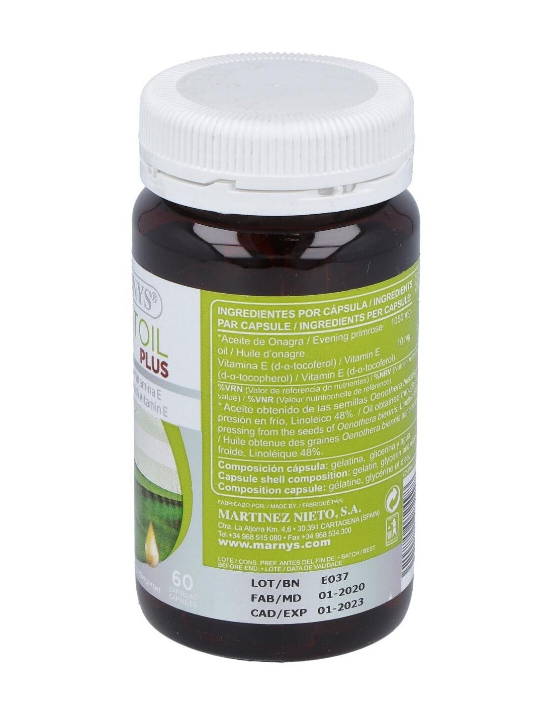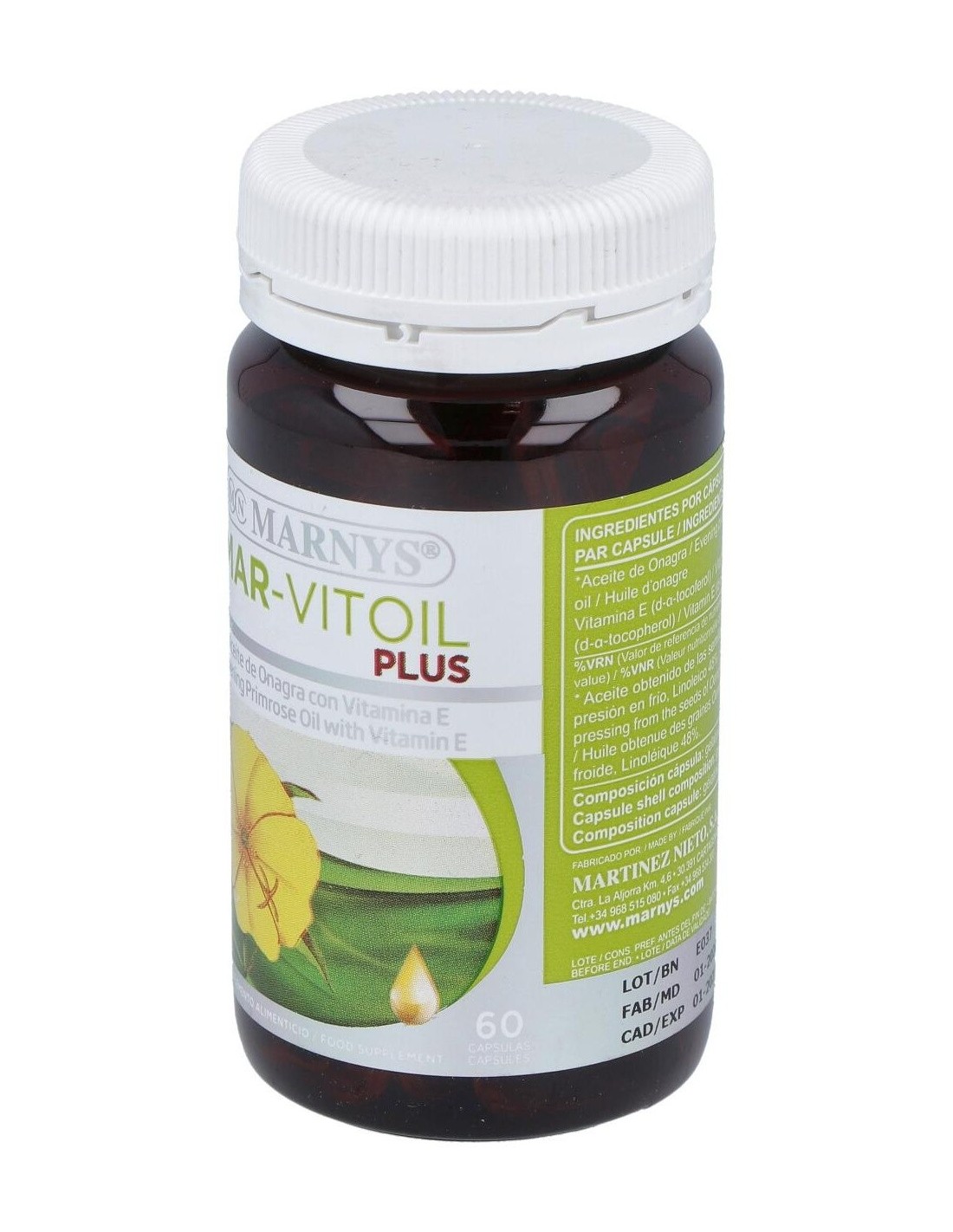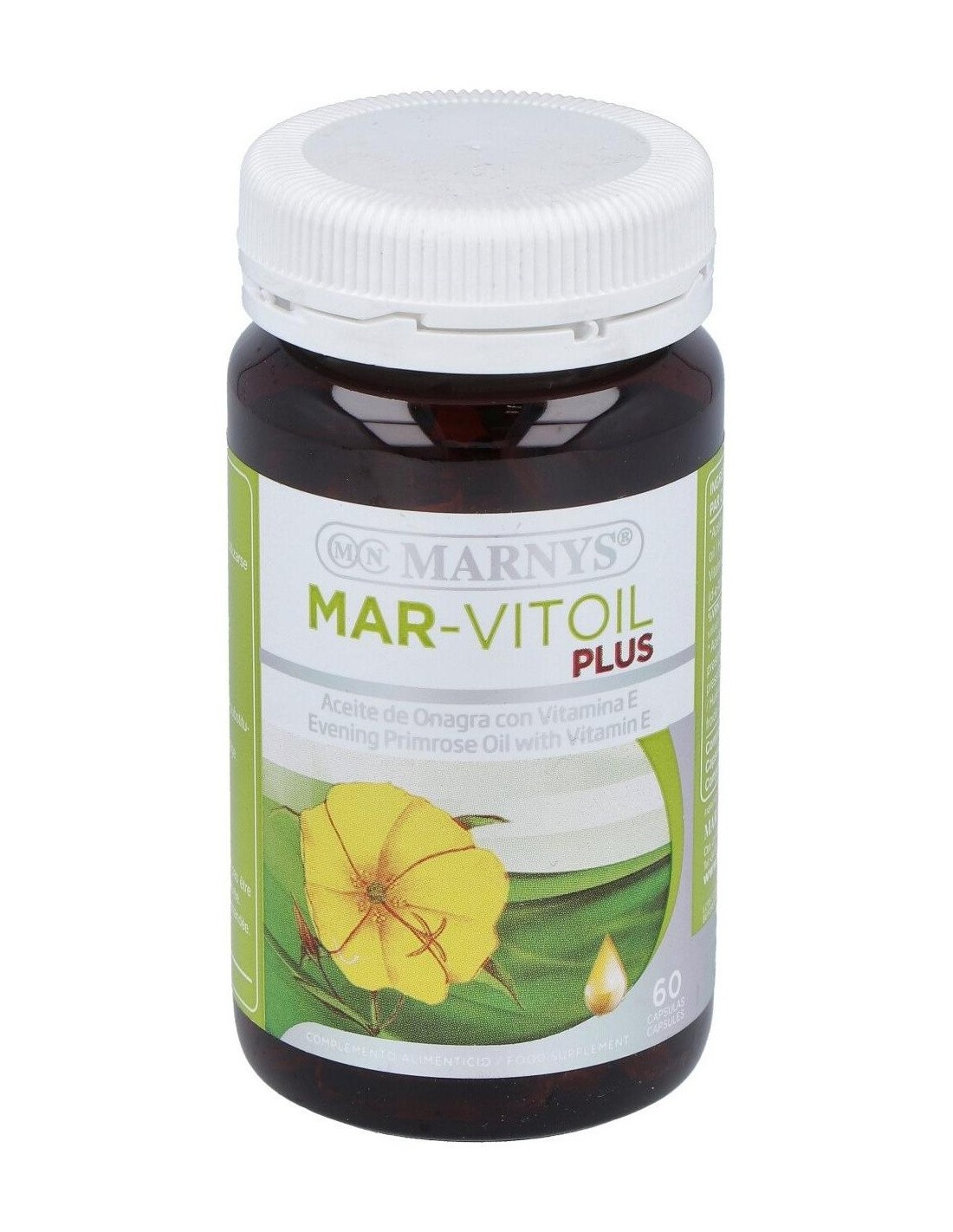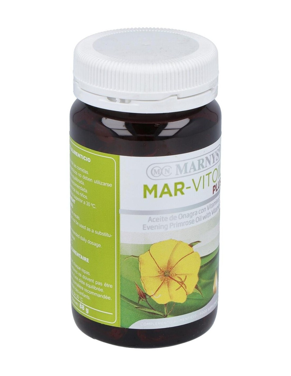 Aceite De Onagra (Mar-Vitoil) 1100Mg. 60Perlas de Marnys es un suplemento diseñado para personas que buscan incorporar ácidos grasos esenciales en su rutina diaria. Su formulación en perlas facilita la dosificación y el consumo, adaptándose a quienes valoran la comodidad y la calidad en sus complementos nutricionales.