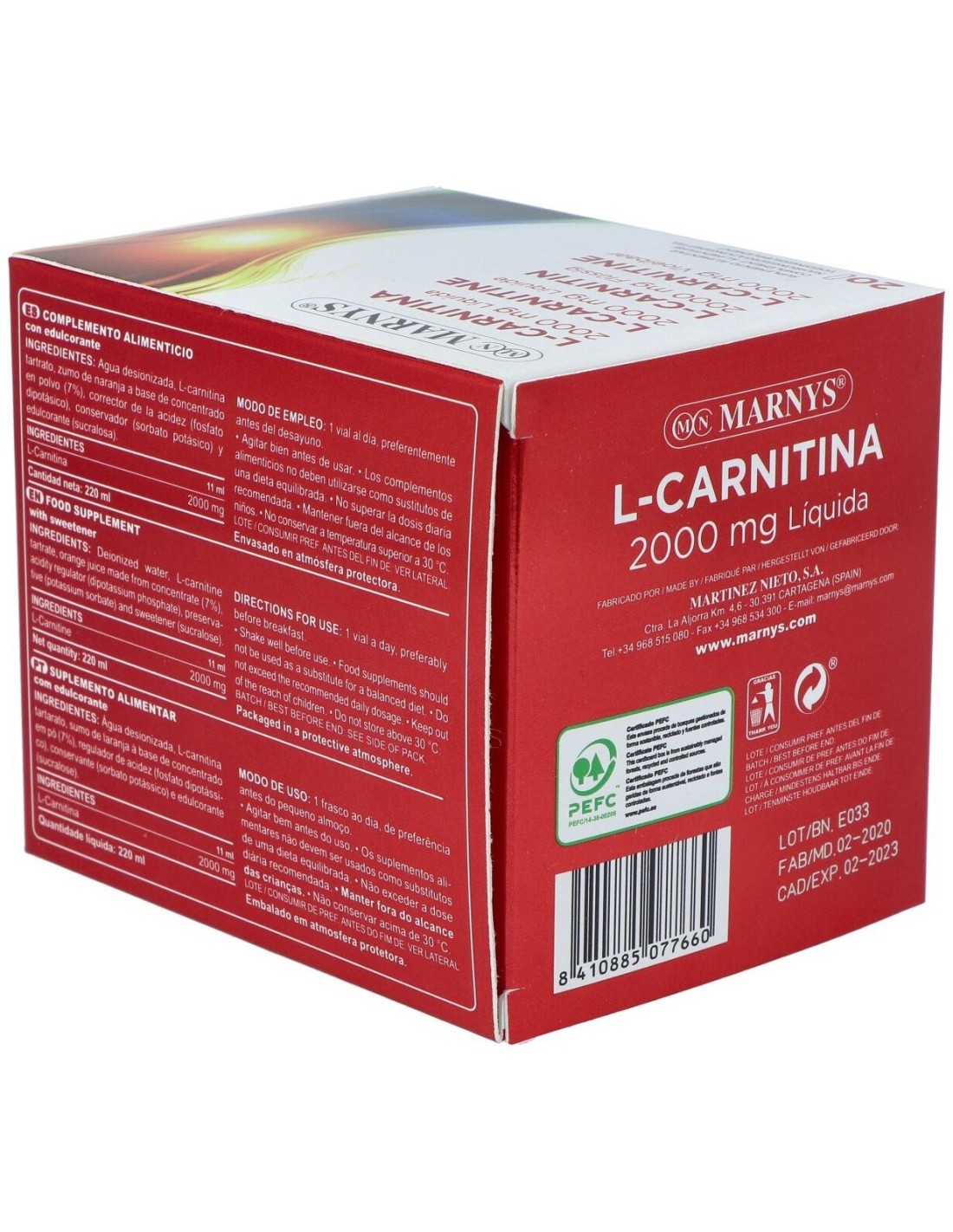 - Cada vial contiene 2000 mg de L-Carnitina, un compuesto que contribuye al metabolismo energético celular.