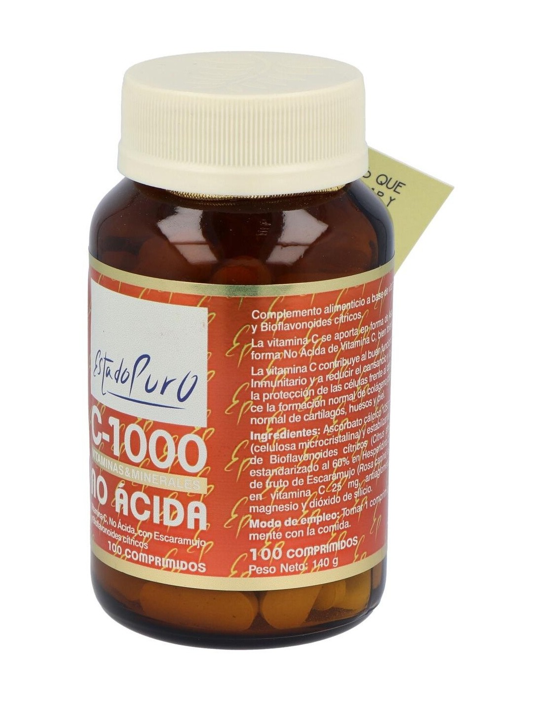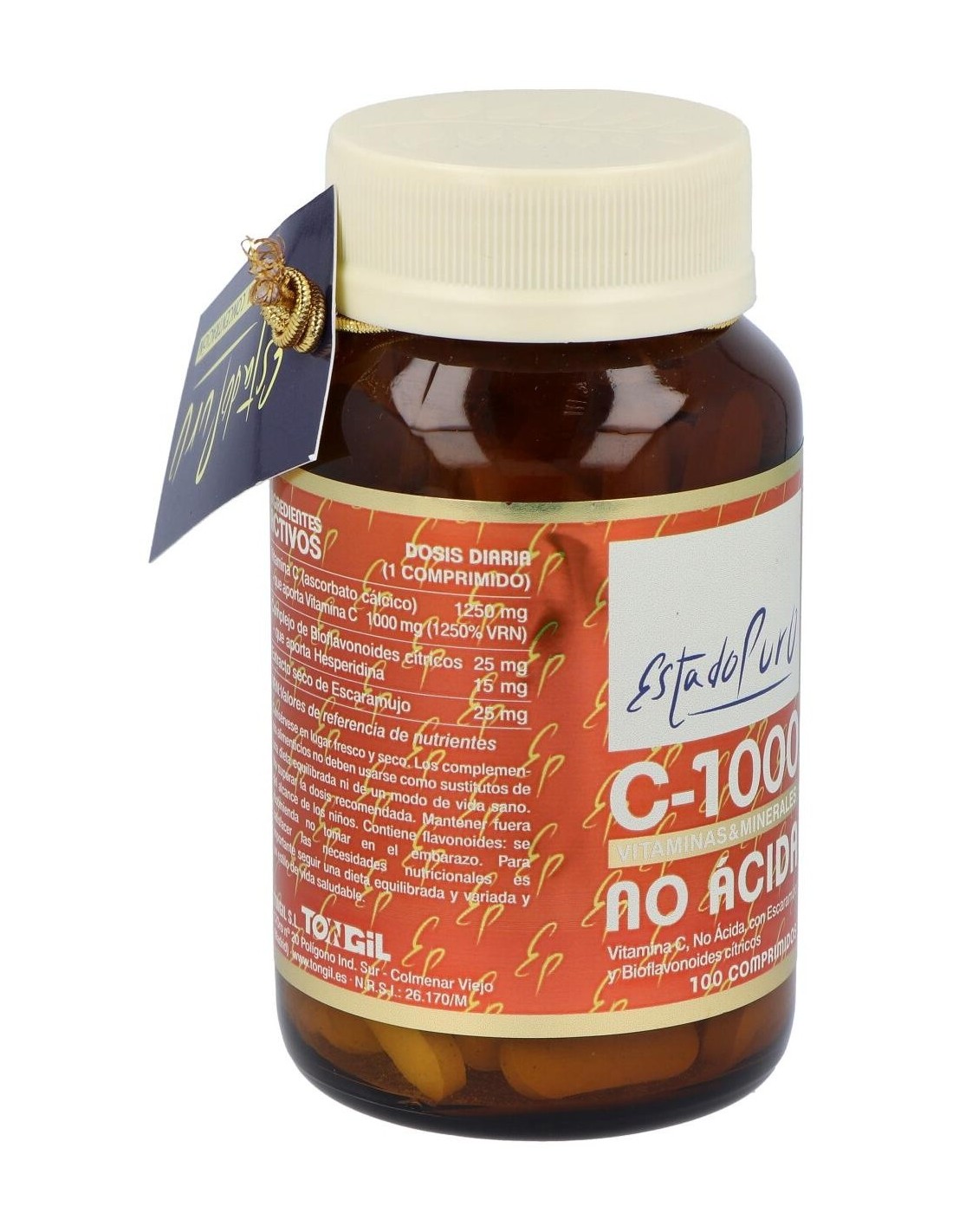 Vitamina C-1000 No Ácida 100Comp. Estado Puro de Tongil proporciona una opción equilibrada para quienes buscan un aporte de vitamina C con una fórmula que cuida la tolerancia digestiva.