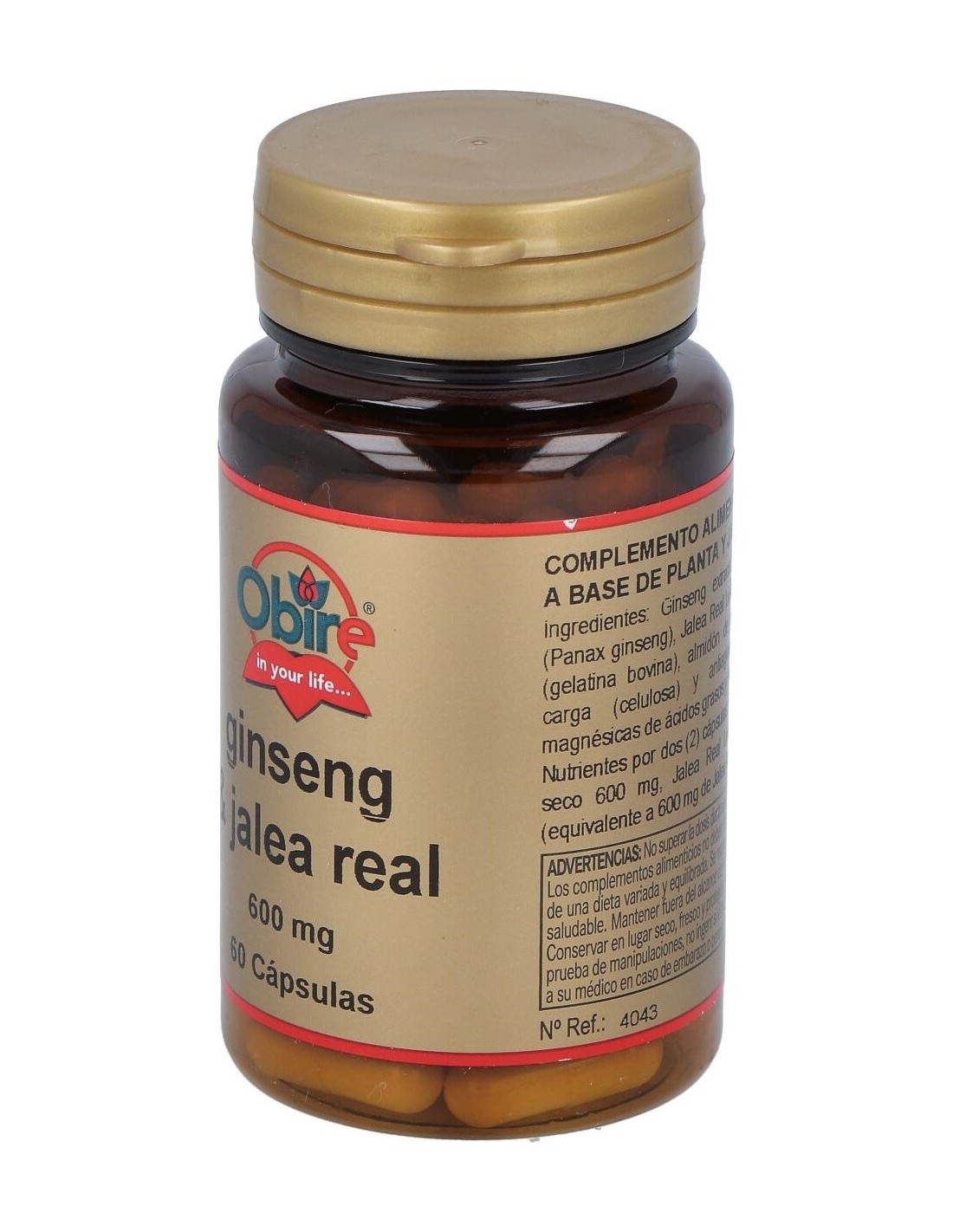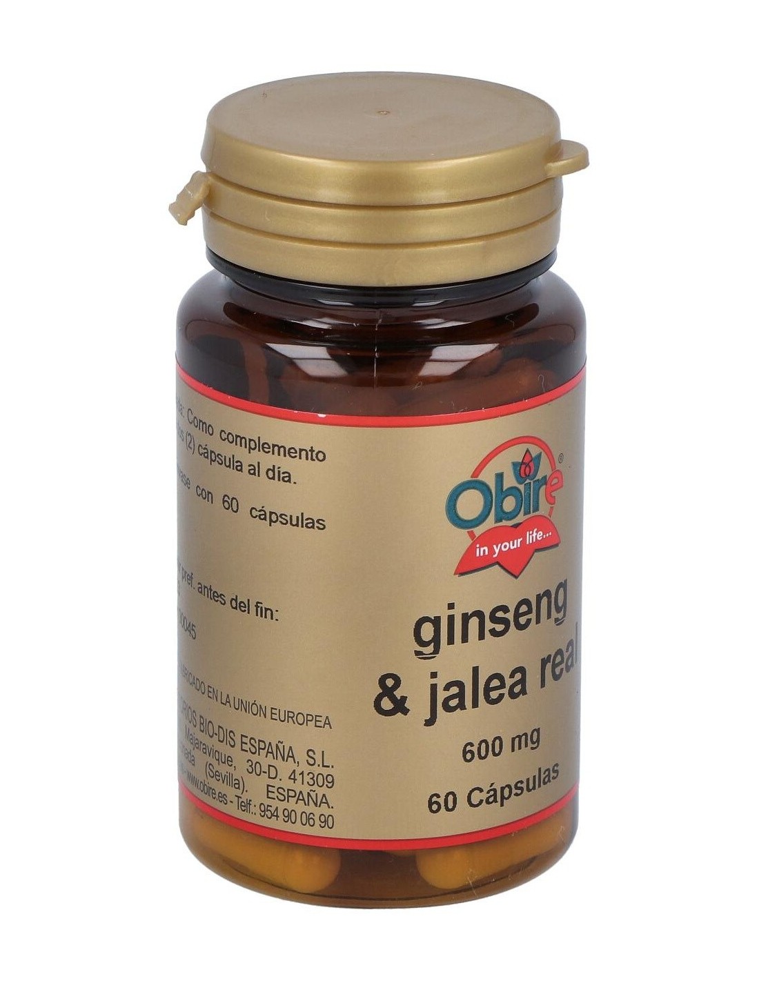 Obire Ginseng y Jalea Real 600mg es un complemento ideal para aportarte energía y vitalidad gracias a los nutrientes combinados del ginseng y de la jalea real. Tanto el ginseng como la jalea real son activos que estimularán tu organismo y te protegerán frente a la oxidación celular.