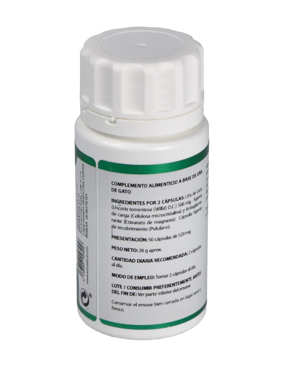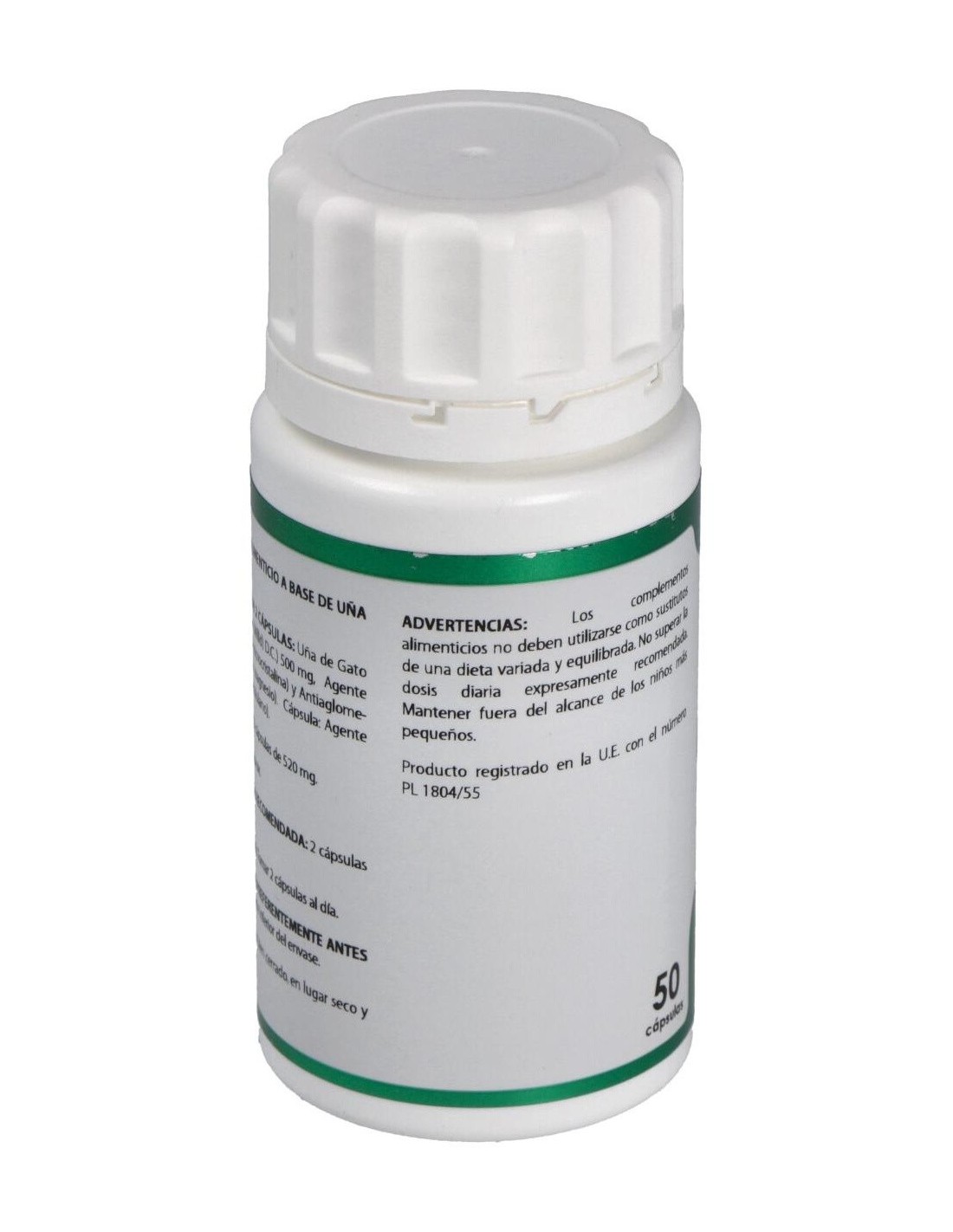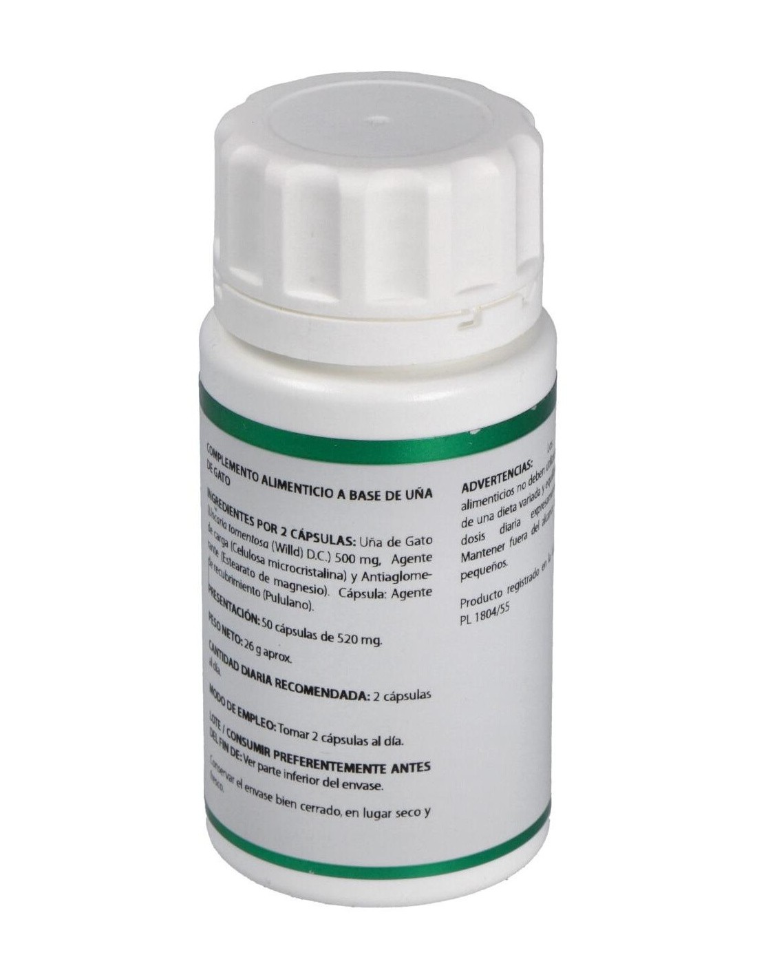 La Uña de Gato puede emplearse para ayudar en una amplia variedad de afecciones: infecciones agudas y crónicas, inmunodeficiencias crónicas, inflamaciones crónicas como artritis, gastritis, colitis ulcerosa, asma. Es coadyuvante en el tratamiento del cáncer al modular las defensas. La Uña de Gato es una liana que crece en las selvas de Perú y otras áreas de Sudamérica. Su nombre hace alusión a las espinas ganchudas que posee en el tallo y que tienen forma de uña felina. Muy utilizada desde hace siglos por las comunidades indígenas peruanas para el tratamiento de cáncer, gastritis, reumatismo, artritis y otras enfermedades. Debido a su creciente popularidad, la recolección de la raíz está prohibida en Perú, para preservar la existencia de esta especie. Entre las diversas acciones farmacológicas que se atribuyen a esta planta, destacamos su actividad antiinflamatoria, antioxidante, inmunoestimulante y antitumoral. Se han descubierto dos quimiotipos con diferentes propiedades farmacológicas. Un quimiotipo contiene solamente alcaloides oxiindólicos pentacíclicos (POA) y afecta principalmente al sistema inmunológico; el otro contiene POA y alcaloides oxiindólicos tetracíclicos (TOA) que actúan en el sistema nervioso central. Los dos quimiotipos son botánicamente idénticos pero el quimiotipo con TOA puede ejercer efectos antagónicos a los de POA por lo que plantas con un alto contenido en TOA no son favorables para los usos indicados. Composición por cápsula:250 mg de extracto nebulizado de uña de gato (Uncaria tomentosa, corteza, >3% Uncarina E). Modo de empleo:Tomar 2 cápsulas al día. Presentación:Envase de 50 cápsulas.