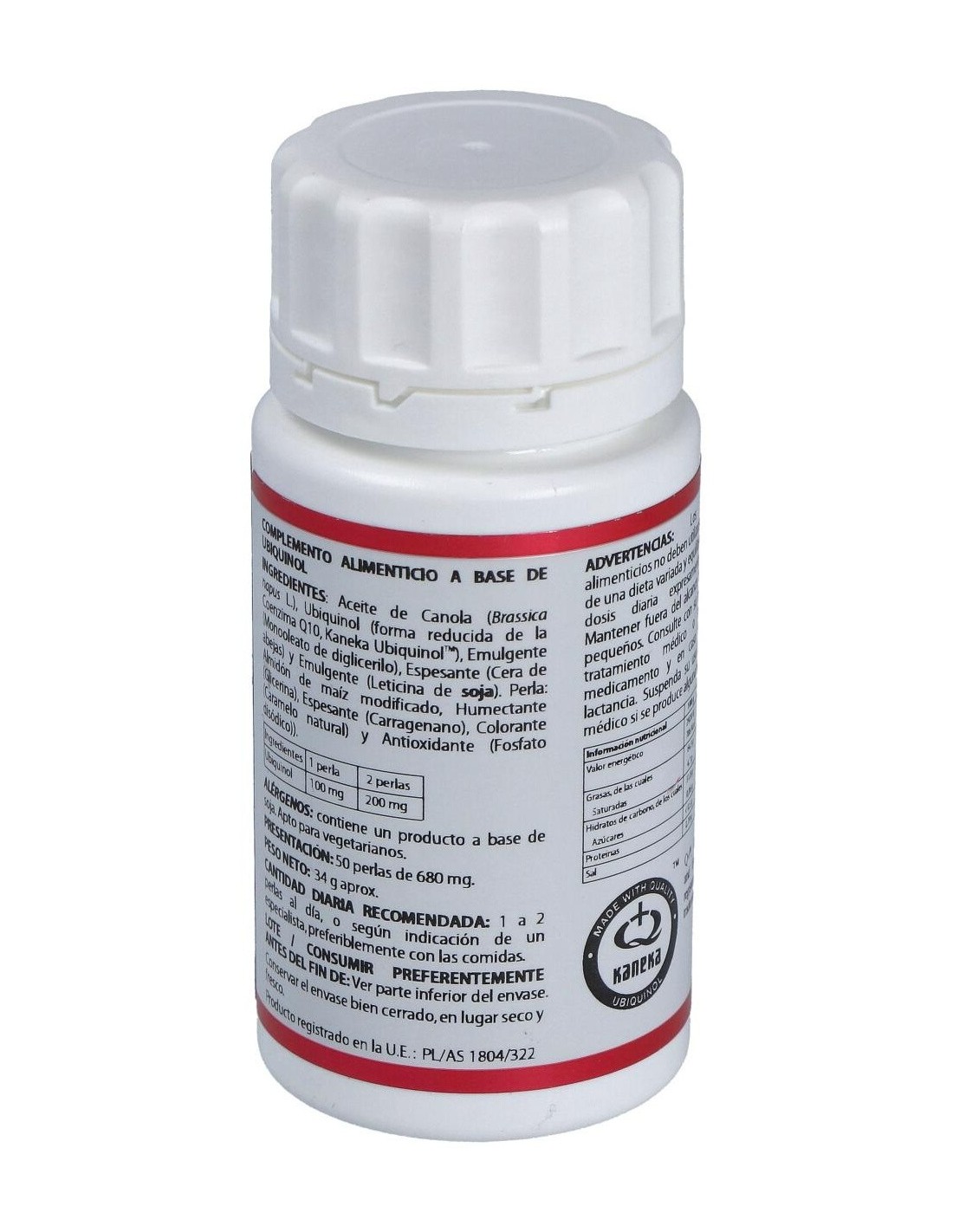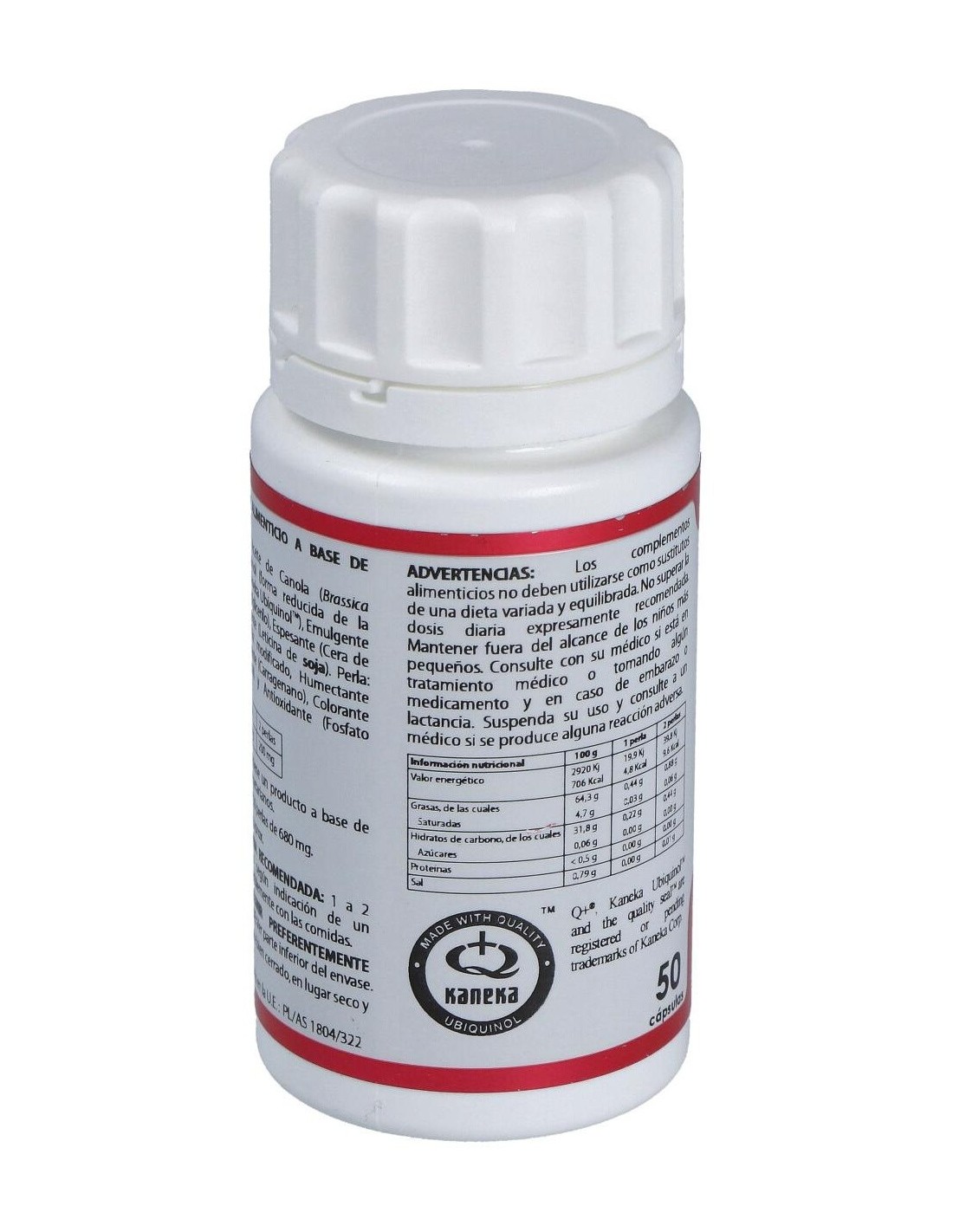 100 mg de ubiquinol (forma reducida de la coenzima Q10, Kaneka QH).