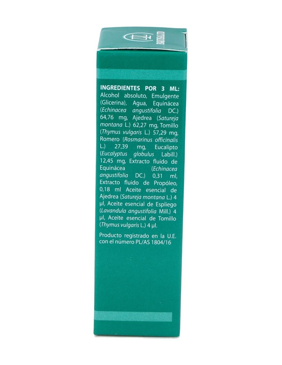 En esta fórmula se han unido plantas con una importante acción antiséptica y antivírica junto con propóleo y plantas capaces de potenciar el sistema inmunológico como la equinácea. Tiene también una acción antifúngica (hongos). Composición: