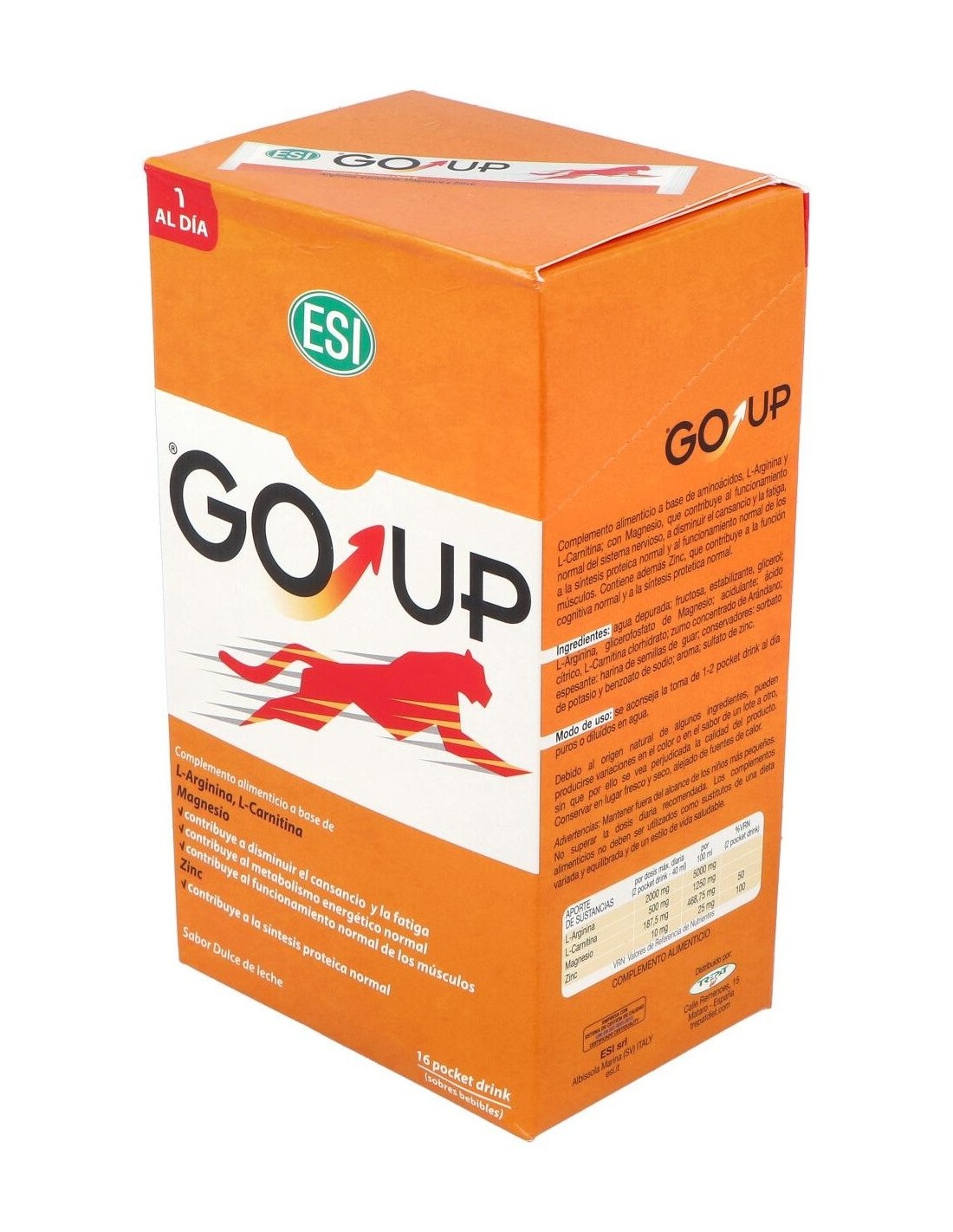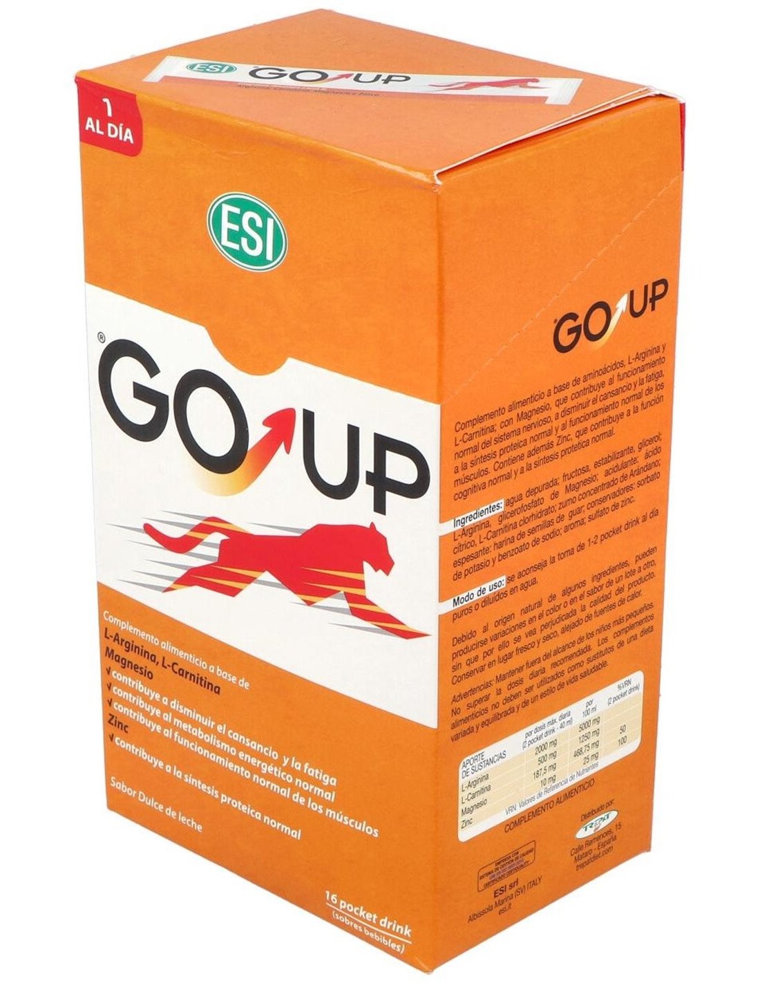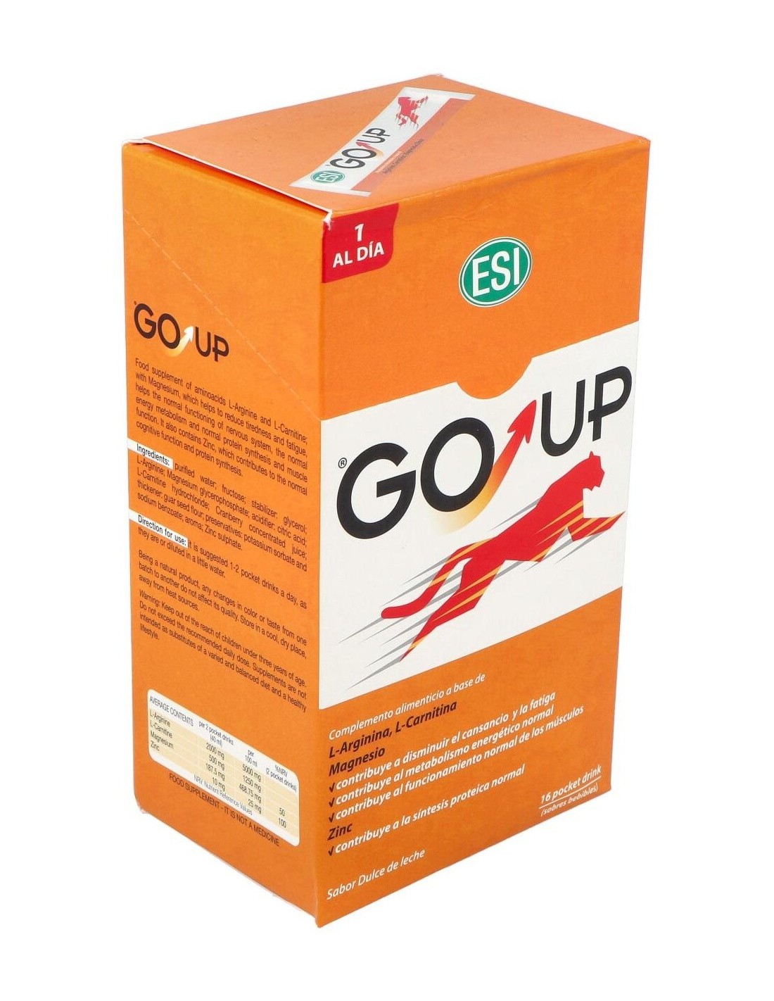 Este producto contribuye al metabolismo energético y a la síntesis protéica normal, mejorando notablemente la potencia, masa y volumen muscular. GO UP está indicado en la práctica deportiva. La presentación de la arginina y carnitina vienen en forma de L remarcando su origen natural.