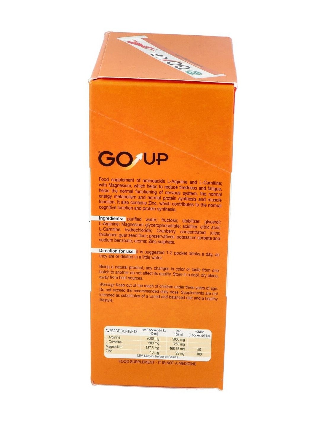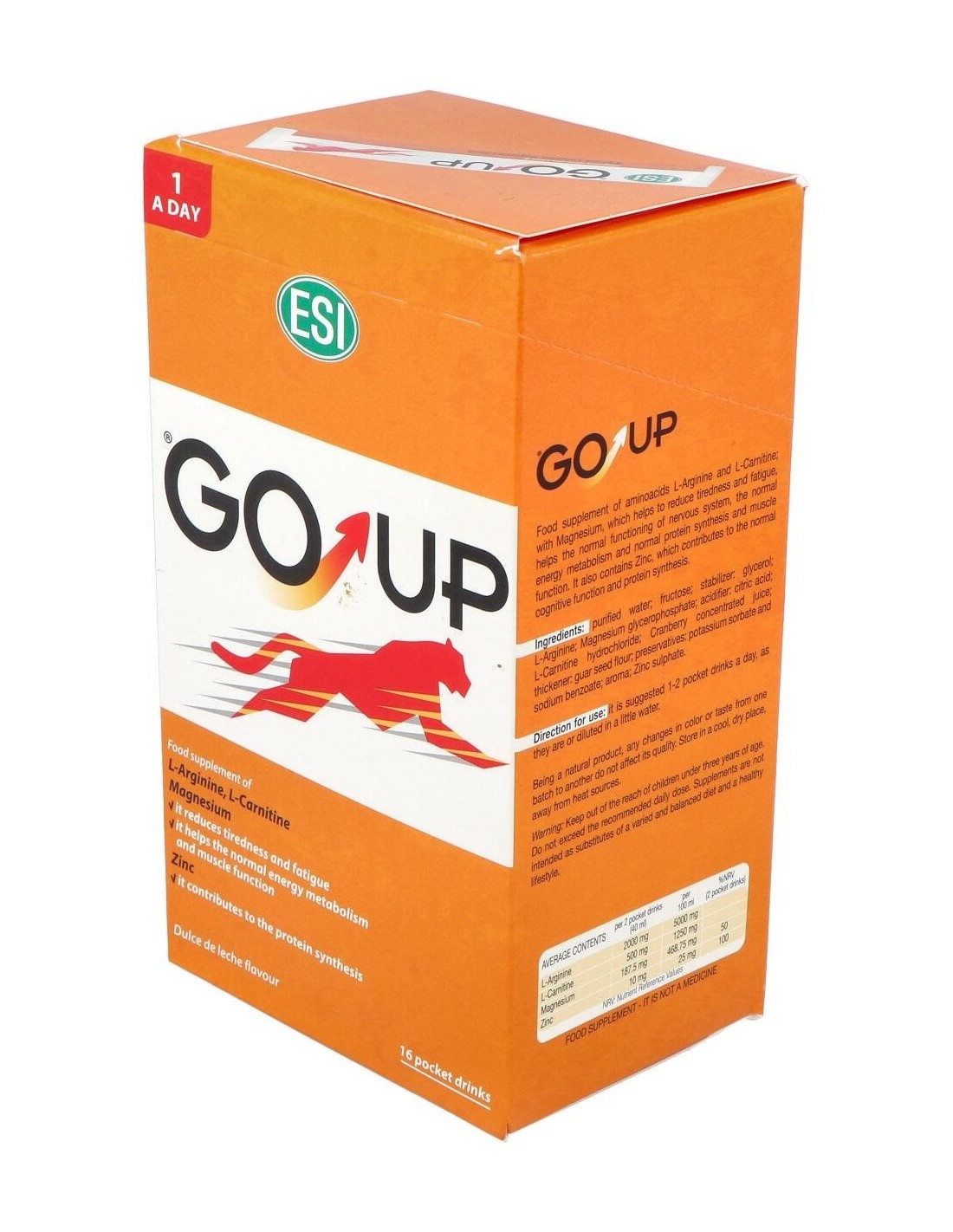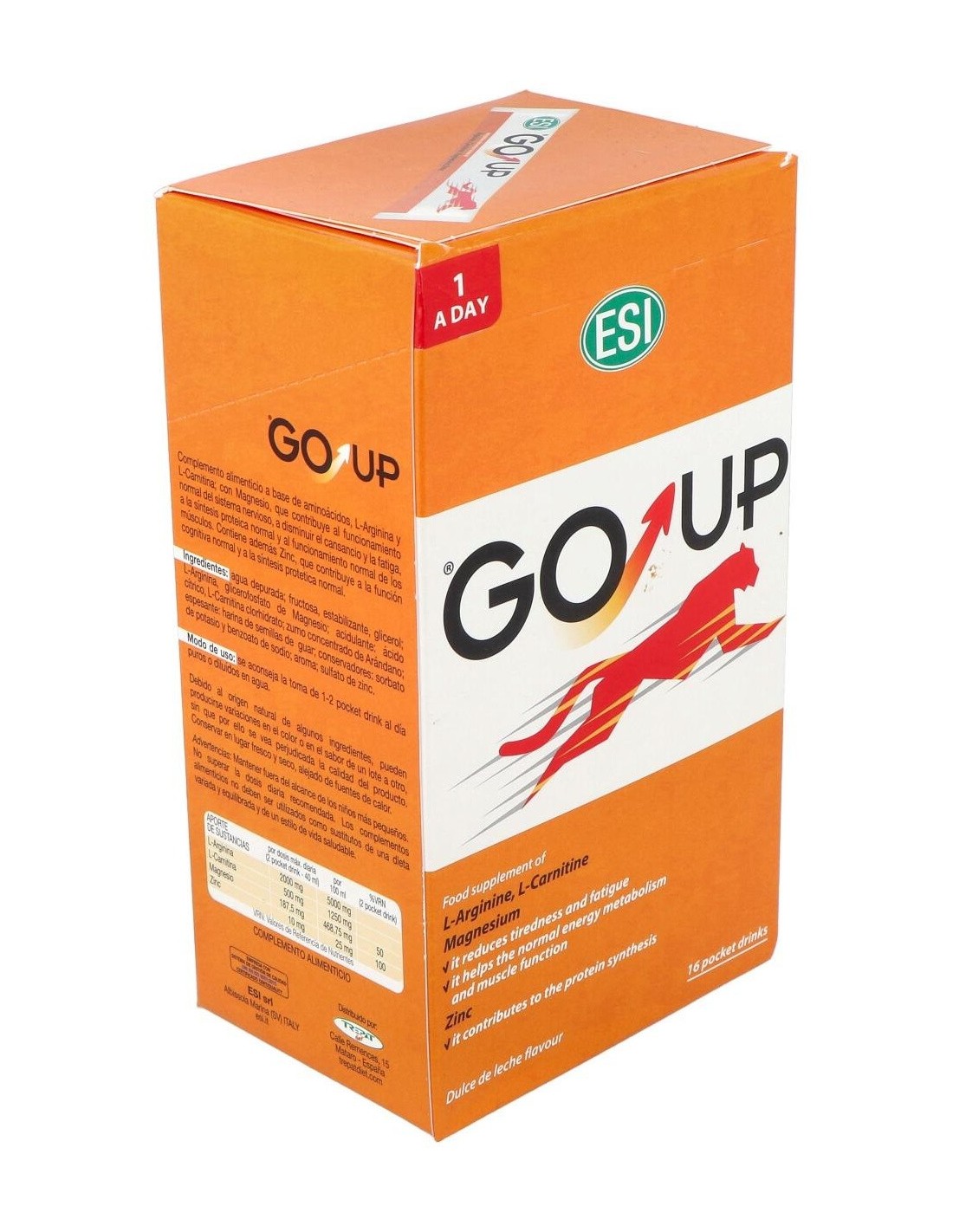 Este producto contribuye al metabolismo energético y a la síntesis protéica normal, mejorando notablemente la potencia, masa y volumen muscular. GO UP está indicado en la práctica deportiva. La presentación de la arginina y carnitina vienen en forma de L remarcando su origen natural.