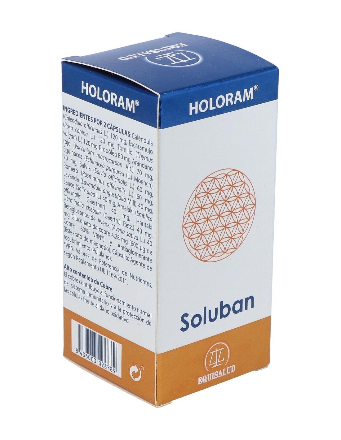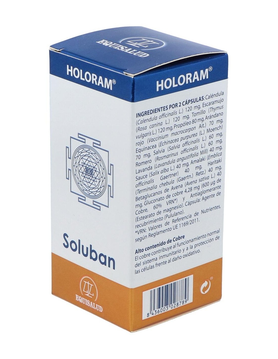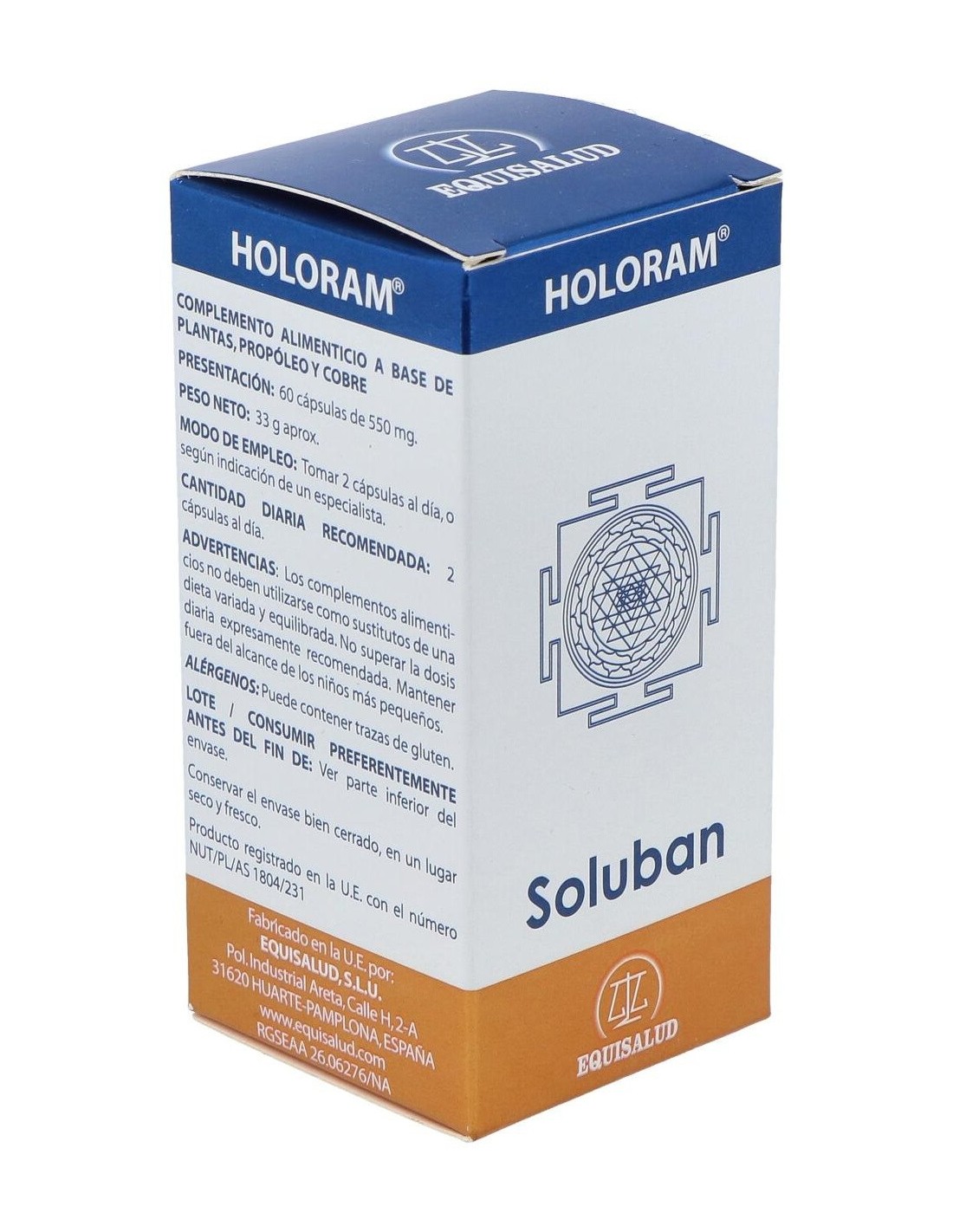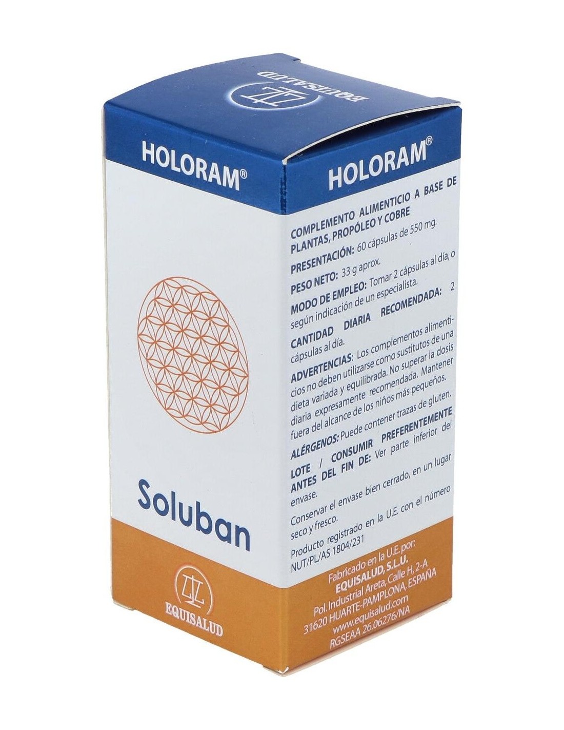 El Holoram Soluban puede contribuir en la activación de los procesos biorreguladores de la inmunidad humoral, necesarios a la normalización de la flora bacteriana y la inhibición de la proliferación de bacterias patógenas. La sinergia de sus componentes, cuidadosamente seleccionados y activados biofísicamente, hacen del HoloRam Solubac un biorregulador que puede ser de gran utilidad como coadyuvante en el control de las infecciones bacterianas. Su mecanismo de acción incluye el efecto biorregulador sobre la inmunidad humoral, el estrés oxidativo, la producción de enzimas anti-radicales libres, el control de la inflamación y la reparación de los epitelios. Composición por cápsula: