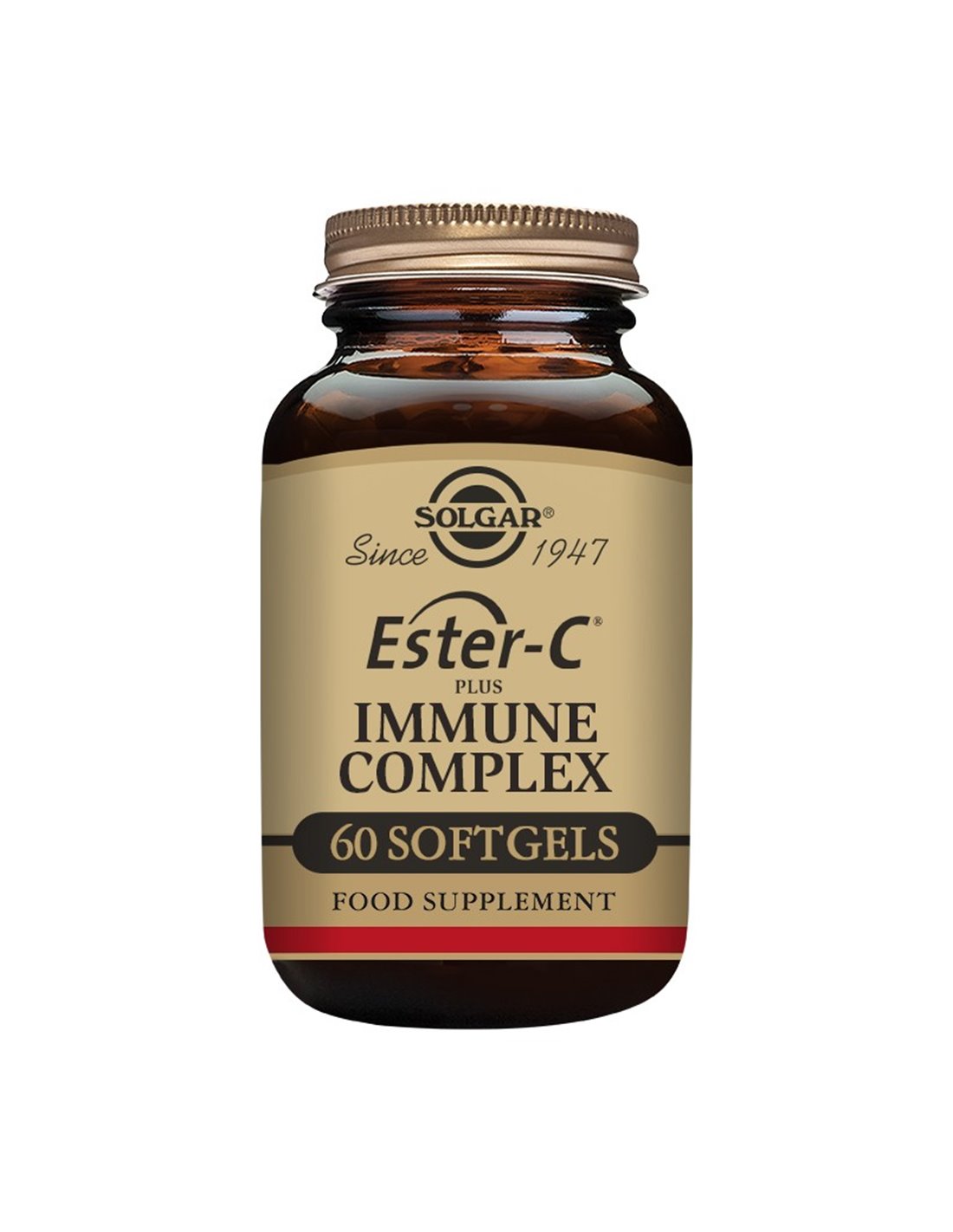 Ester- C Immune Complex de Solgar es una fórmula de apoyo inmunológico integral científicamente estudiada para ayudar a mantener la función del sistema inmunológico durante todo el año. Contiene una forma única de vitamina C que no es ácida y es suave para el estómago, pero también vitaminas A, B6, B12 y D3 y zinc y ingredientes botánicos que incluyen saúco, equinácea y astrágalo. Las vitaminas y el zinc en esta fórmula contribuyen al funcionamiento normal del sistema inmunológico y a la respuesta a la inflamación. Una vez tomado, Ester-C® se retiene en los glóbulos blancos hasta por veinticuatro horas, es decir, el doble de tiempo que el ácido ascórbico estándar.