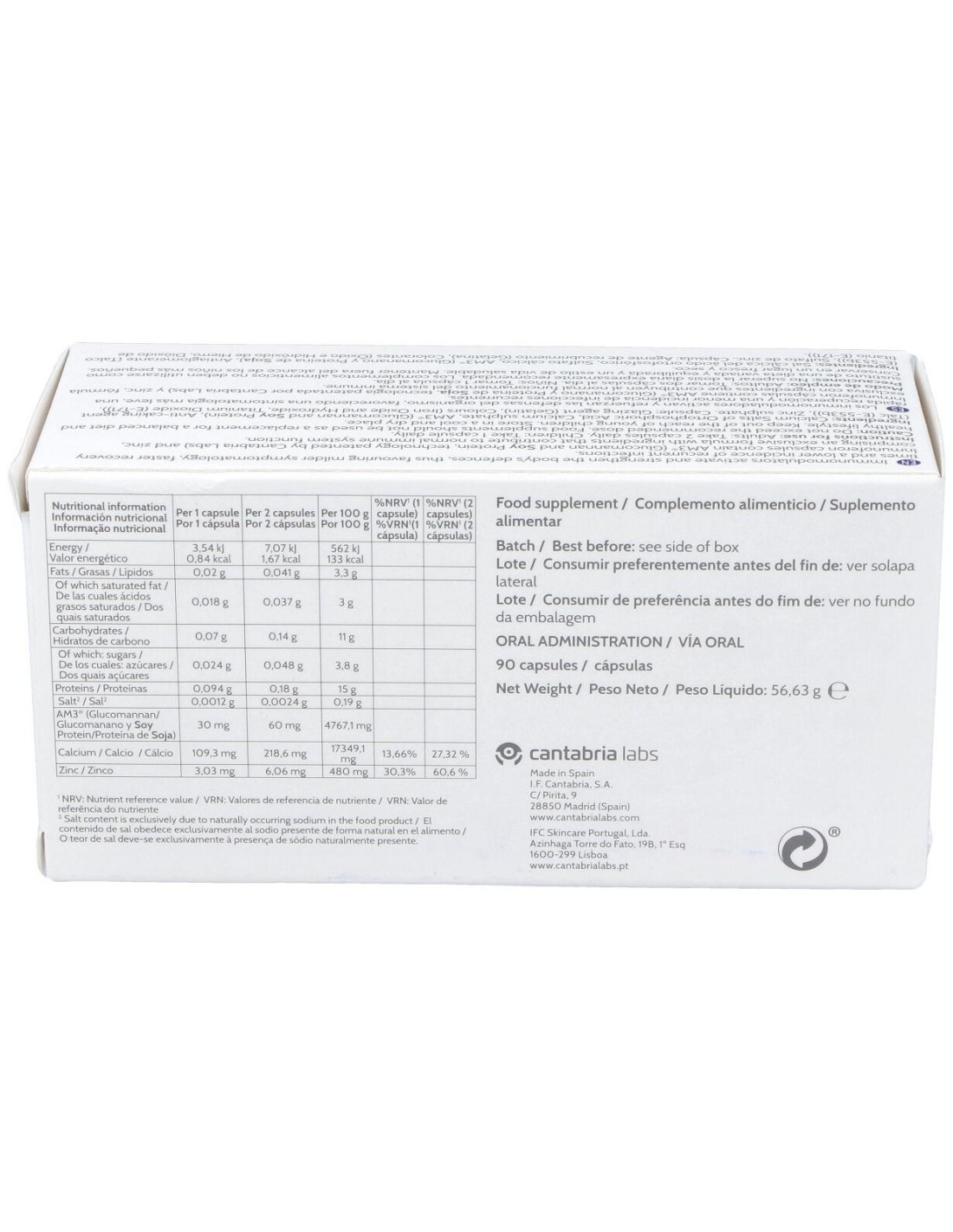 Inmunoferon 90cáps es un complemento alimenticio indicado para reforzar las defensas naturales del organismo. Gracias al complejo AM3, formado por glucomanano y proteína de soja, así como a su aporte en zinc, contribuye al normal funcionamiento del sistema inmunitario y favorece la prevención de infecciones, al mismo tiempo que ayuda a acelerar la recuperación.