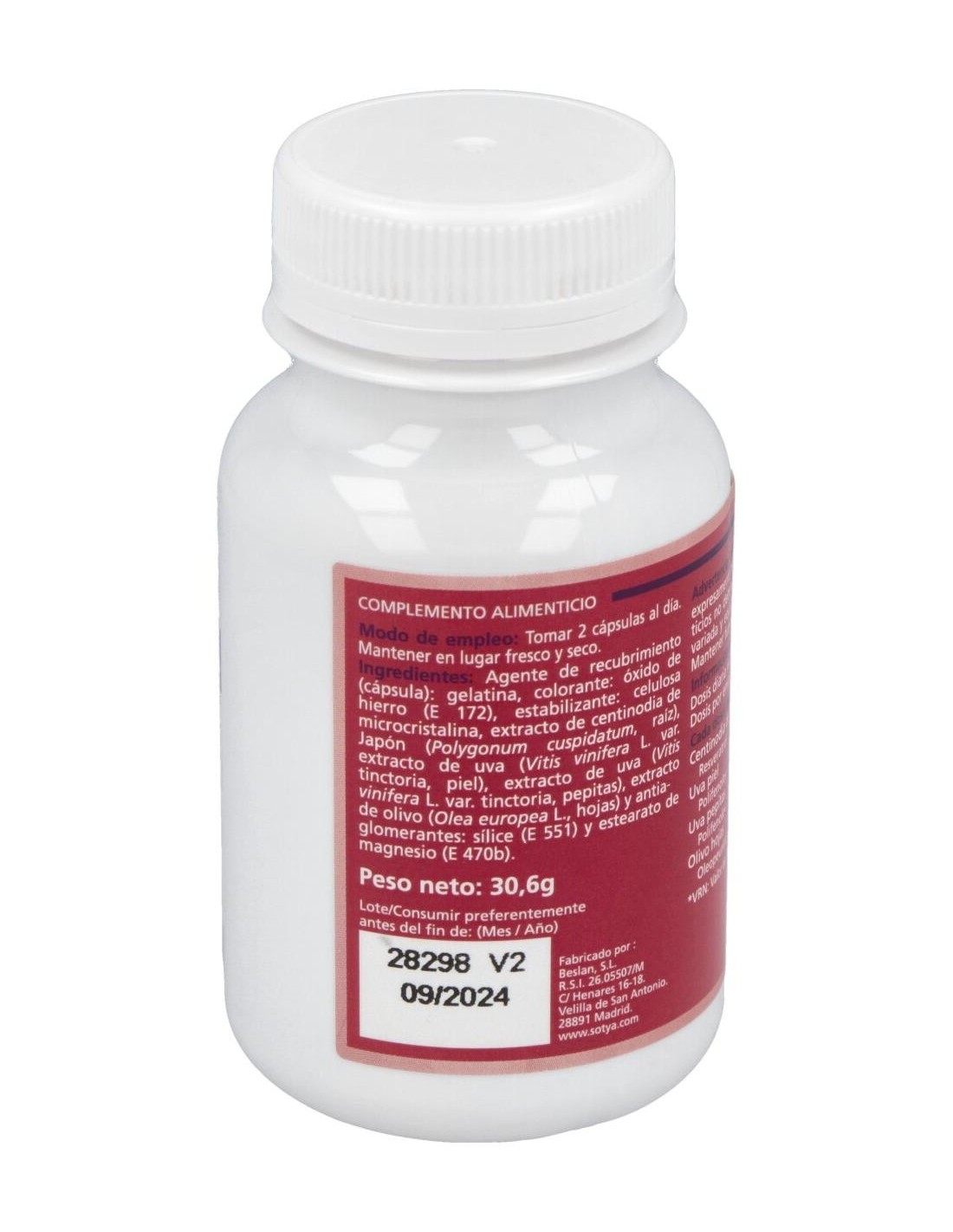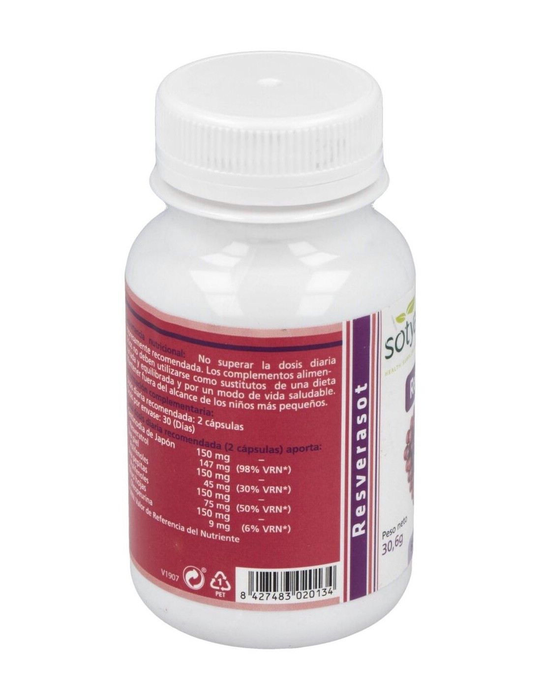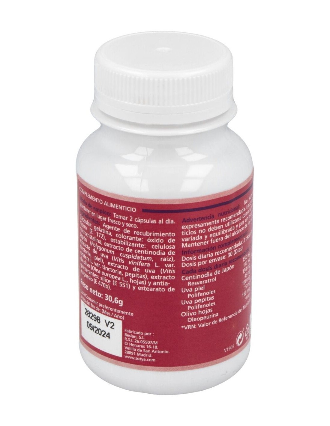 El Resverasot 510Mg Cáps.60U de Sotya es un suplemento antioxidante dirigido a personas que buscan apoyar su bienestar celular, formulado con resveratrol para contribuir a la protección frente al estrés oxidativo.